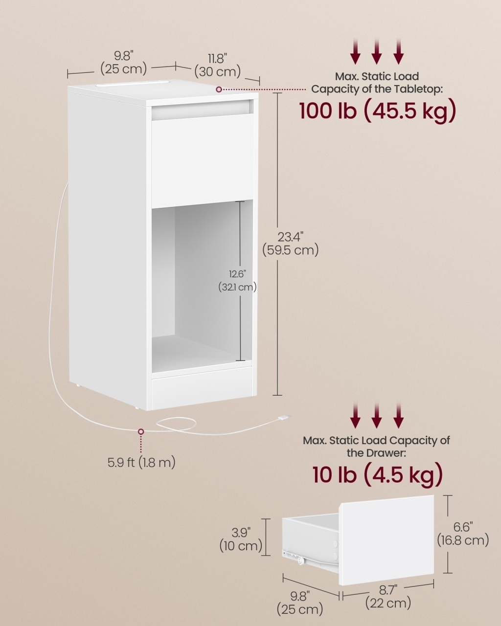 Noptiera Vasagle Alb 25x30x59.5 cm