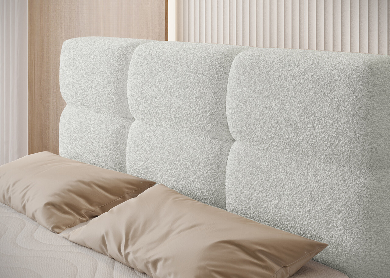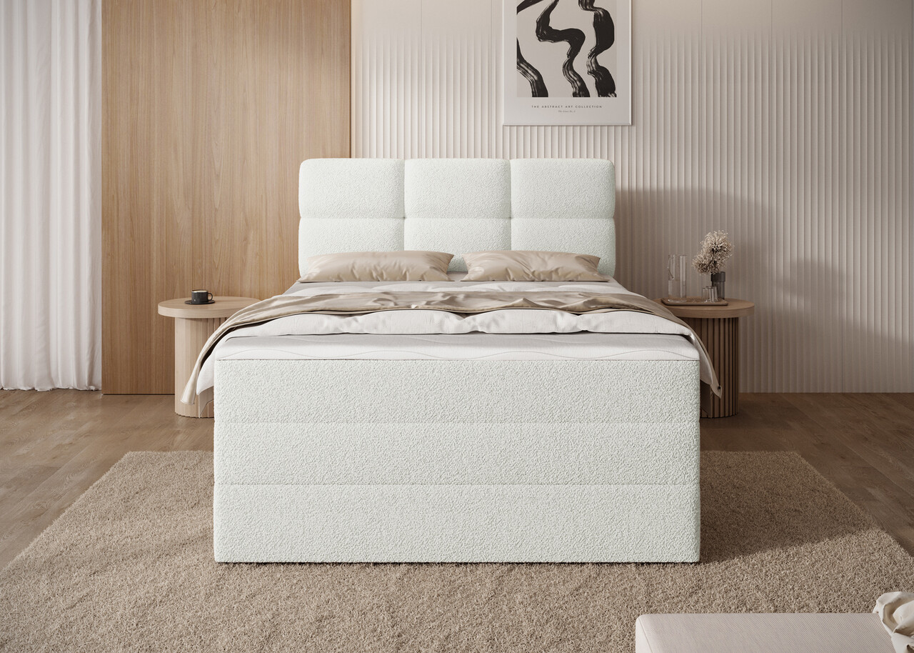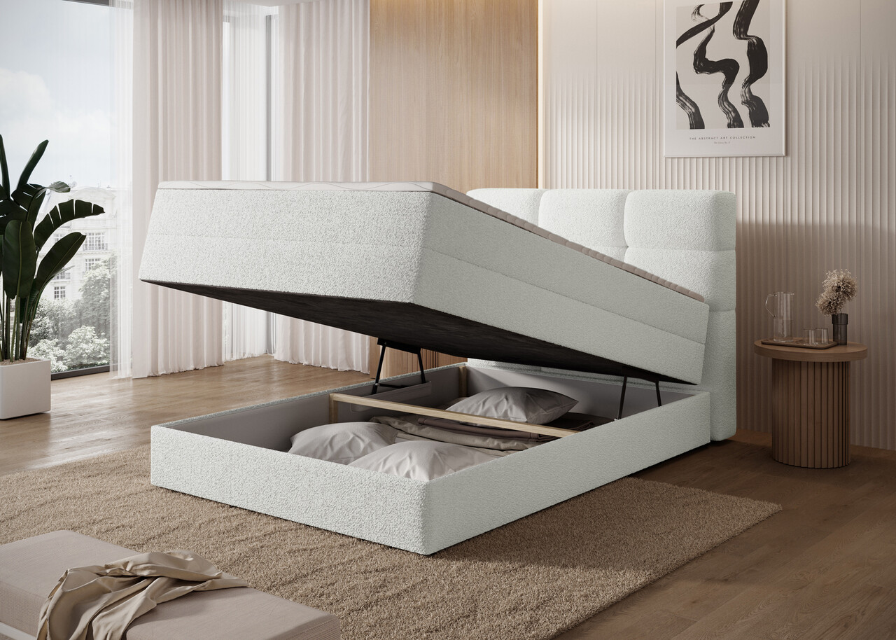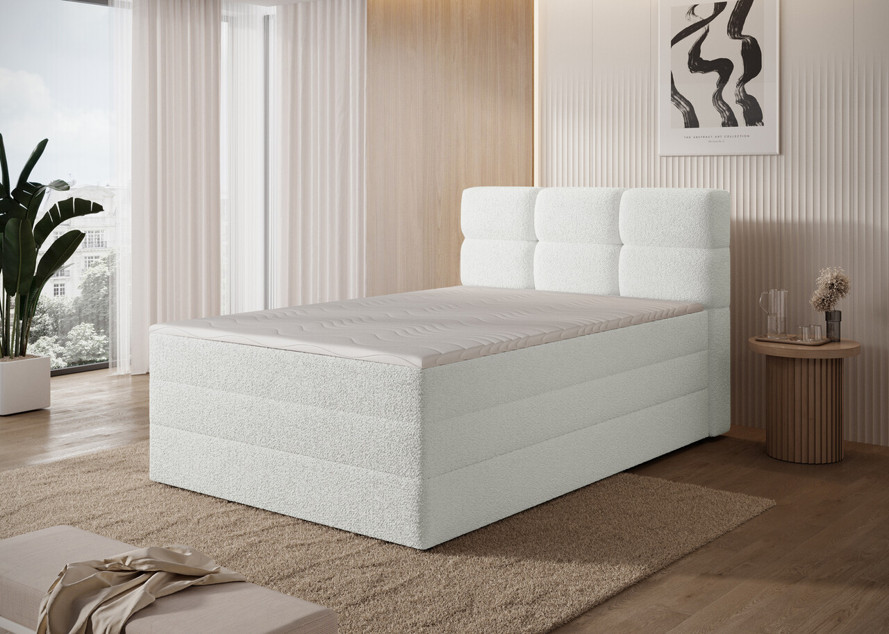 Pat continental tapitat cu lada depozitare 120x200 cm ELTAP Kasped lemn/poliester alb