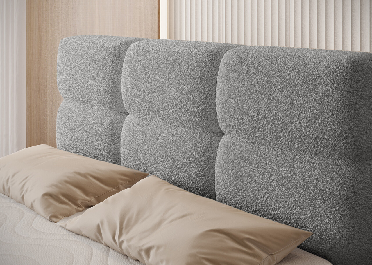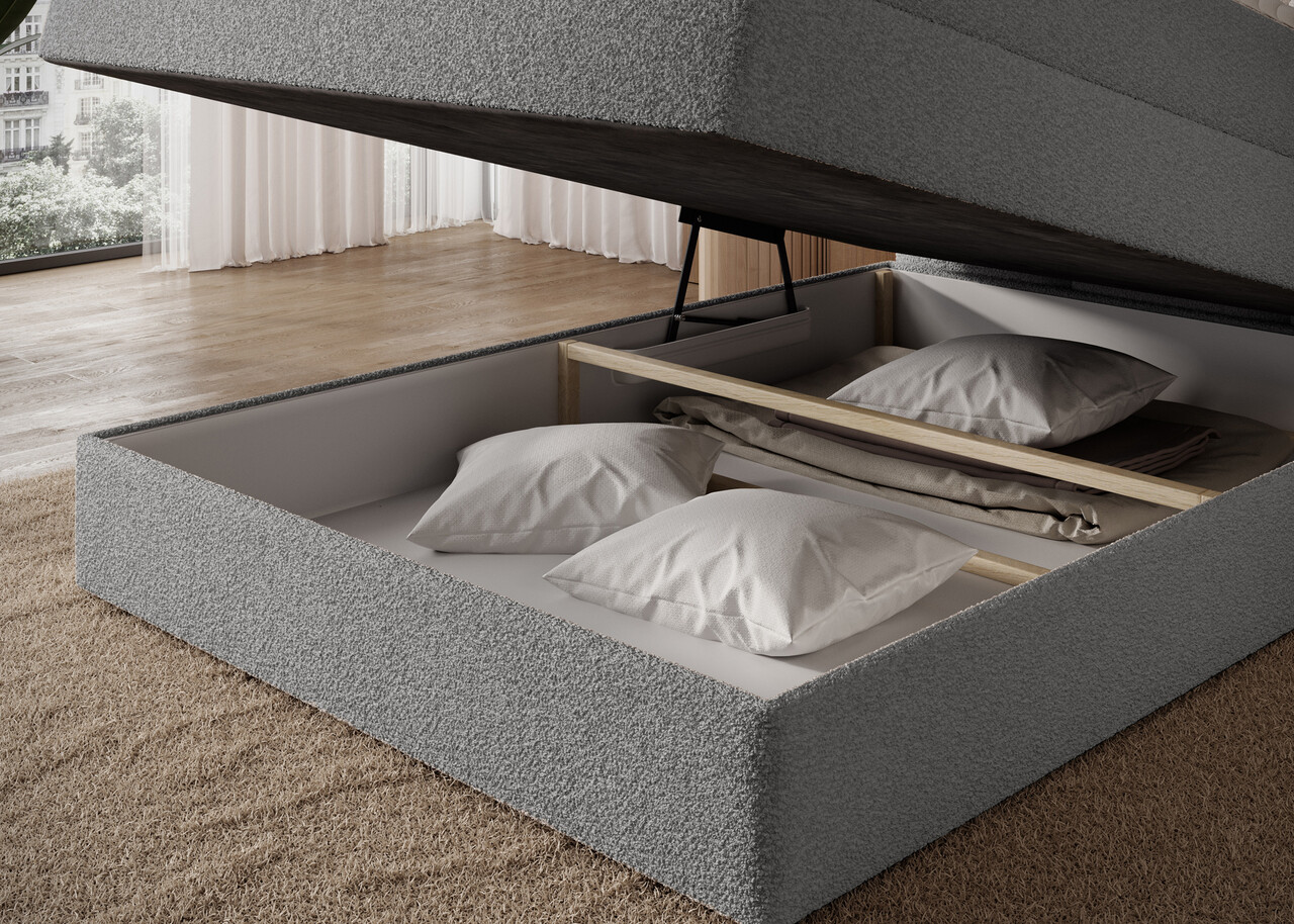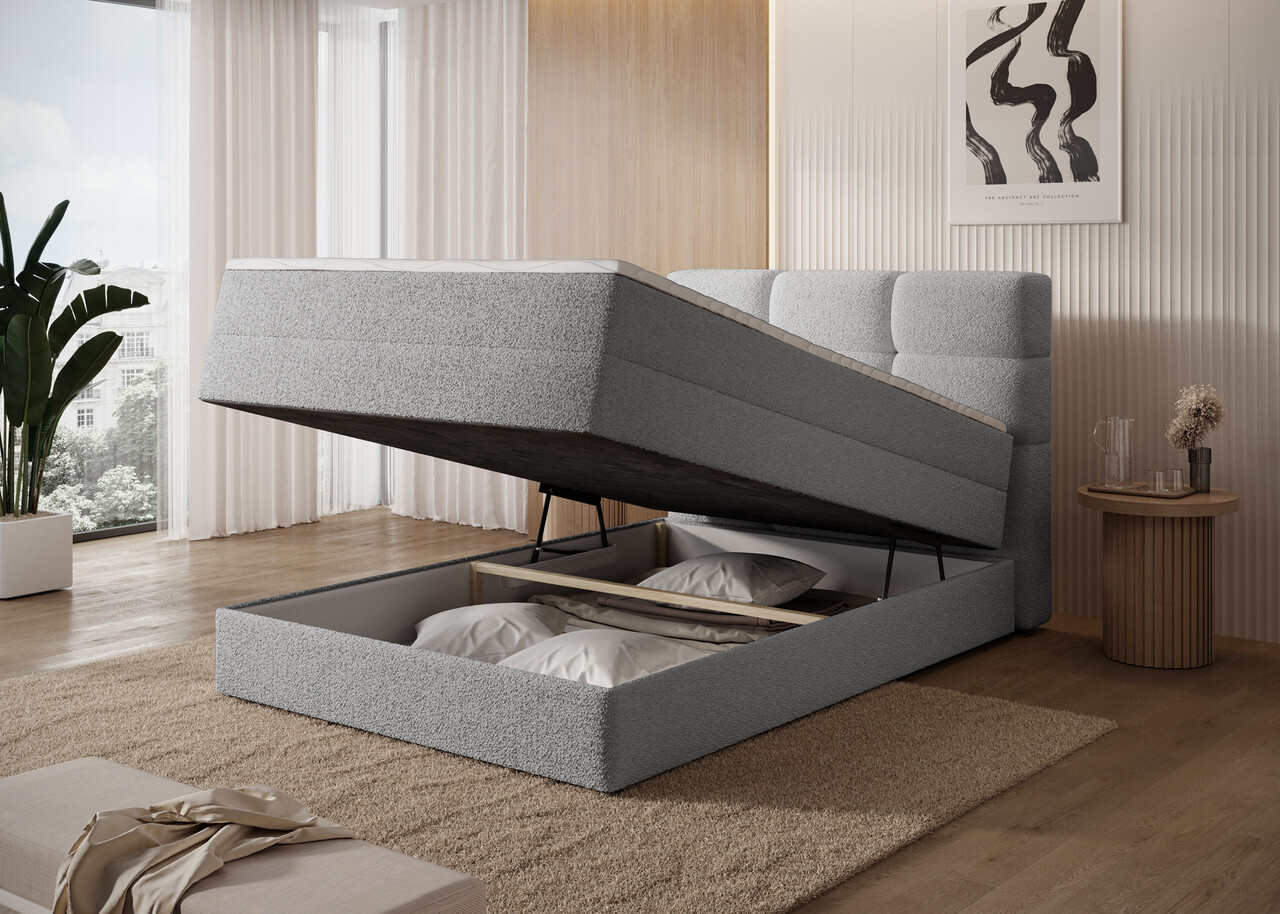 Pat continental tapitat cu lada depozitare 120x200 cm ELTAP Kasped lemn/poliester gri deschis