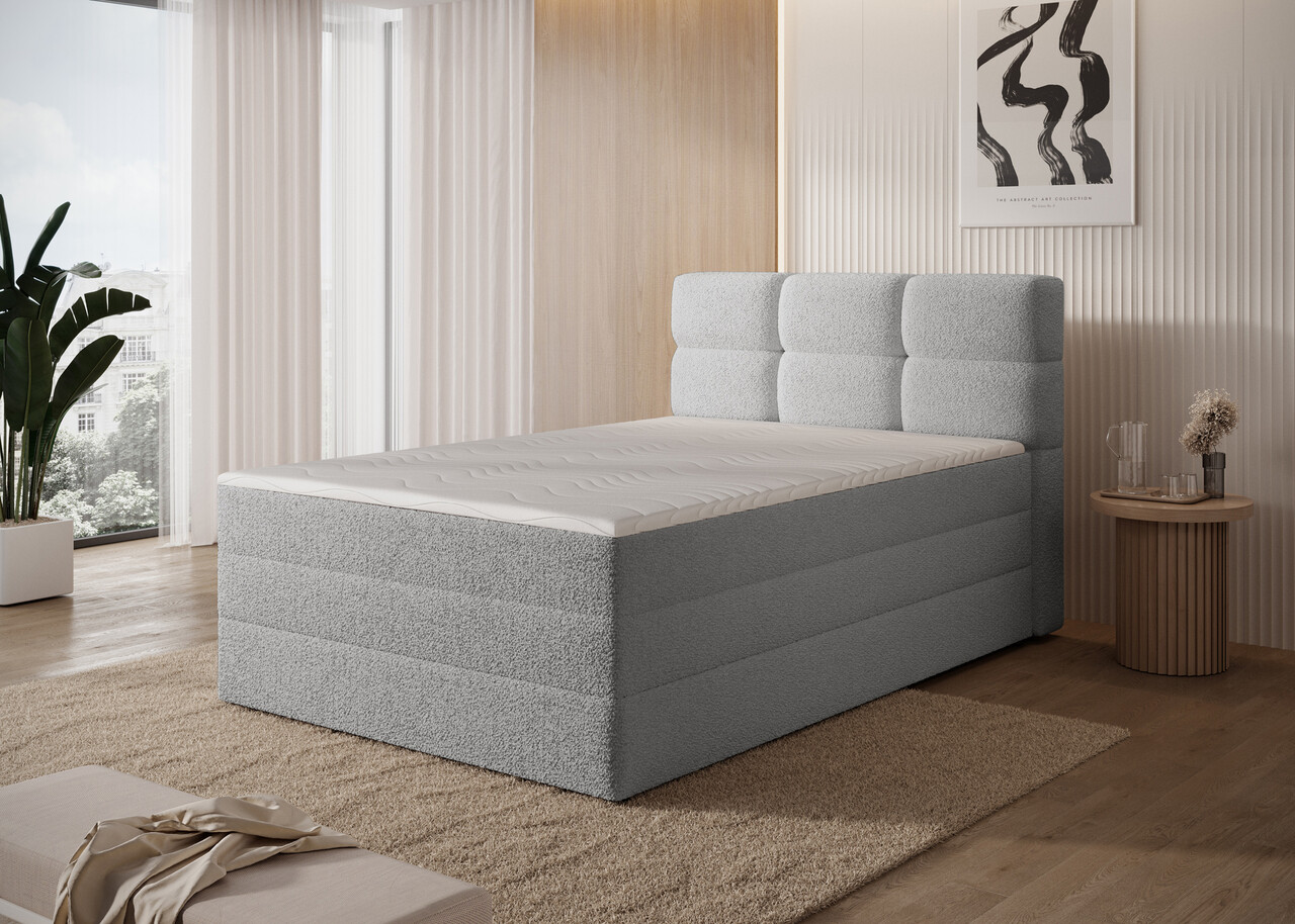 Pat continental tapitat cu lada depozitare 140x200 cm ELTAP Kasped lemn/poliester gri deschis