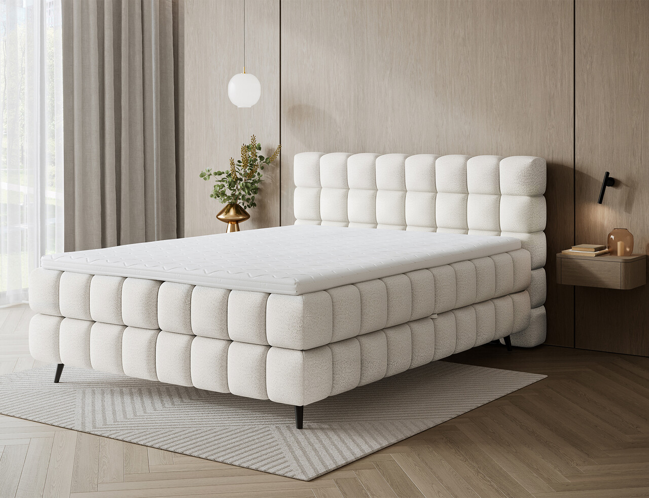 Pat continental tapitat cu lada depozitare 160x200 cm ELTAP Sabeno lemn/poliester alb