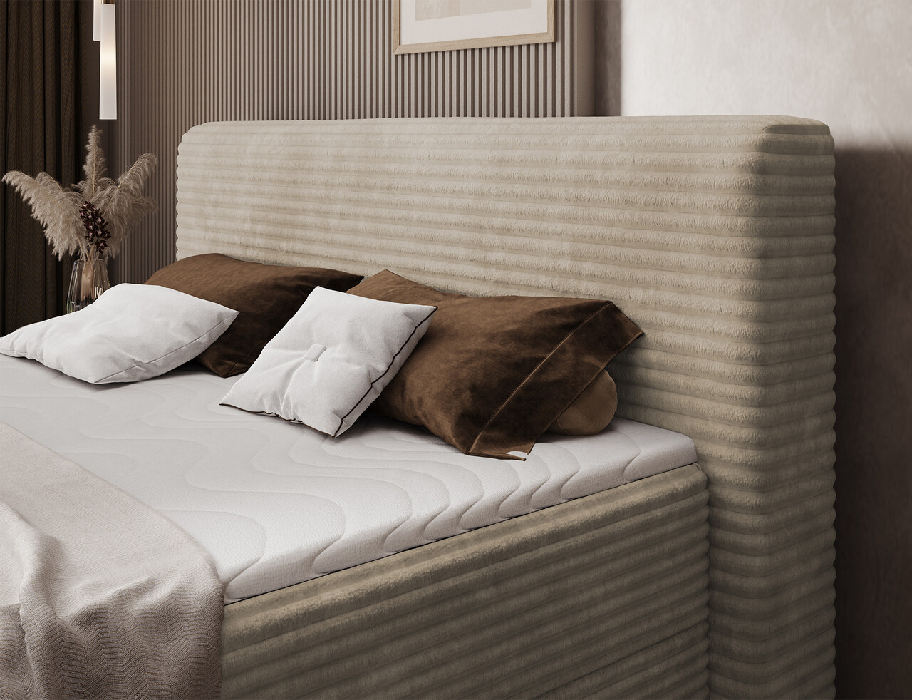 Patul continental Cortiko este o alegere eleganta si confortabila pentru iubitorii stilului modern. Disponibil in trei variante de dimensiuni: 140x200 cm, 160x200 cm si 180x200 cm, permite ajustarea perfecta a latimii – 162 cm, 182 cm sau 202 cm. Inaltimea totala a patului este de 102 cm, iar adancimea de 222 cm, oferind o structura stabila si echilibrata. Combinatia dintre arcurile Bonell si spuma T2540 asigura un suport excelent pentru corp si un confort ridicat in timpul somnului. Modelul Cortiko este echipat cu un compartiment practic pentru depozitarea lenjeriei care ajuta la mentinerea ordinii si la utilizarea eficienta a spatiului din dormitor. Picioarele negre din lemn completeaza designul, adaugand eleganta si lejeritate. Cu un design modern, patul Cortiko se potriveste perfect atat in interioare minimaliste, cat si in amenajari mai expresive, devenind un element stilat si functional al oricarui dormitor.Compozitie materialMaterial tapiterie: 100% poliester (tesatura primara Modullo 18).Material cadru: lemn de pinUmplutura sezut: spuma T2540, arcuri BonellGrosime topper: 4 cmUmplutura spatar: spuma T2130Picioare din lemn de culoare neagra.Informatii si dimensiuni specificeInaltime sezut: 56 cmInaltime picioare: 10 cmGreutatea maxima suportata: 260 kgCompartiment depozitare: 2Dimensiuni compartiment depozitare: 182x86x15 cmSuprafata de dormit: 180x200 cmProdusul necesita asamblare.