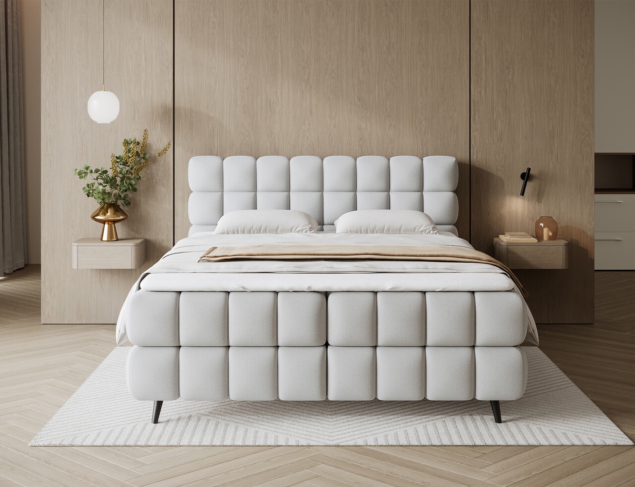 Patul continental Sabeno este o alegere eleganta si functionala pentru orice dormitor modern. Modelul este disponibil in trei variante de dimensiuni: 140x200 cm, 160x200 cm si 180x200 cm, permitandu-va sa ajustati latimea patului in functie de nevoile individuale. Inaltimea totala a structurii este de 111 cm, iar lungimea de 222 cm, oferind patului un aspect stabil si impunator. Confortul in timpul somnului este asigurat de combinatia dintre arcurile Bonell si spuma T2540 care ofera sustinere adecvata si durabilitate. Patul Sabeno este echipat cu un compartiment practic pentru depozitarea lenjeriei care ajuta la mentinerea ordinii in dormitor. Picioarele negre din lemn completeaza designul, adaugand eleganta subtila si lejeritate. Stilul modern al patului Sabeno il face sa se potriveasca perfect atat in interioare minimaliste, cat si in amenajari mai expresive. Datorita functionalitatii, materialelor de inalta calitate si finisajului estetic, patul continental Sabeno este alegerea ideala pentru cei care apreciaza confortul, durabilitatea si mobilierul de dormitor stilat.Compozitie materialMaterial tapiterie: 100% poliester (tesatura primara Tonall 03).Material cadru: lemn de pinUmplutura sezut: spuma T2540 si arcuri BonellGrosime topper: 5 cmUmplutura spatar: spuma T2130Picioare din lemn de culoare neagra.Informatii si dimensiuni specificeInaltime sezut: 56 cmInaltime picioare: 11 cmGreutatea maxima suportata: 260 kgCompartiment depozitare: 2Dimensiuni compartiment depozitare: 196x92x20 cmSuprafata de dormit: 180x200 cmProdusul necesita asamblare.
