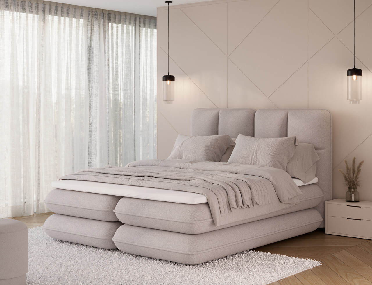 Patul Tonila este un pat tapitat modern si functional care imbina confortul somnului cu solutii practice pentru dormitor, fiind ideal atat pentru amenajari moderne, cat si clasice. Constructia solida, cu o inaltime de 127 cm si o lungime de 235 cm, asigura stabilitate si un sprijin confortabil, iar umplutura utilizata: spuma T2130 (lada de depozitare), arcuri bonell si spuma T2540 cu grosimea de 2.5 cm garanteaza sustinerea corecta a corpului si un nivel ridicat de confort in utilizarea zilnica. Patul este dotat cu un spatiu practic de depozitare pentru lenjerie care faciliteaza organizarea si mentinerea ordinii in dormitor, iar aspectul este completat de picioare de mobilier negre, ce confera structurii un caracter modern si aerisit. Modelul Tonila este disponibil in trei dimensiuni populare: 140x200 cm, 160x200 cm si 180x200 cm, permitand adaptarea usoara la dimensiunea incaperii si la nevoile individuale, oferind un pat confortabil care combina estetica, durabilitatea si functionalitatea.Compozitie materialMaterial tapiterie: 100% poliester (tesatura primara Paolli 18).Material cadru: lemn de pinUmplutura sezut: arcuri Bonell si spuma T2540Umplutura cadru: spuma T2130Grosime topper: 5 cmUmplutura spatar: spuma T2130Picioare din plastic de culoare neagra.Informatii si dimensiuni specificeInaltime sezut: 52 cmInaltime picioare: 2.5 cmGreutatea maxima suportata: 220 kgCompartiment depozitare: 2Dimensiuni compartiment depozitare: 196x66x23 cmSuprafata de dormit: 140x200 cmProdusul necesita asamblare.