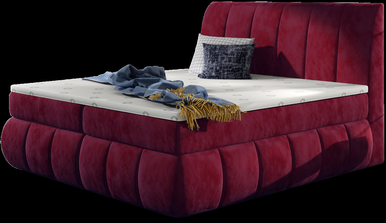 Pat tapitat cu lada depozitare 160x200 cm ELTAP BVI-16-1.6 Vincenzo lemn/poliester rosu