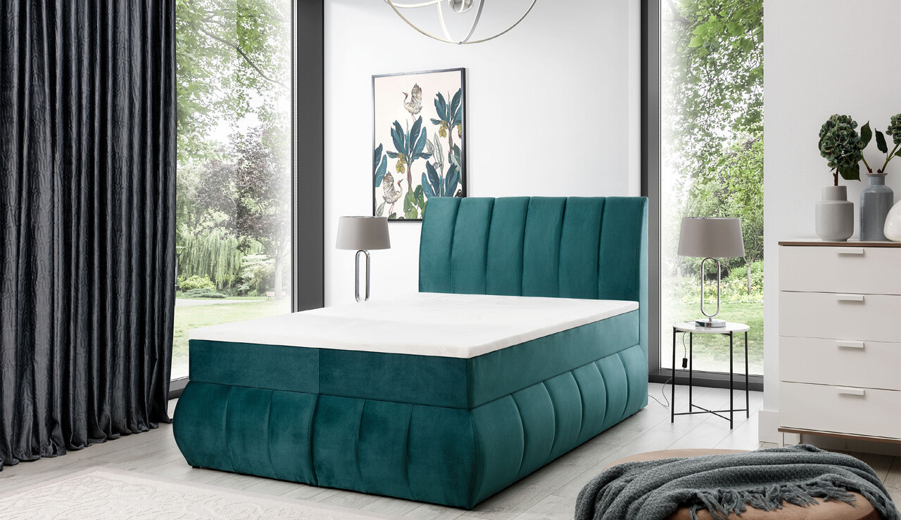 Pat tapitat cu lada depozitare 160x200 cm ELTAP BVI-28-1.6 Vincenzo lemn/poliester verde inchis