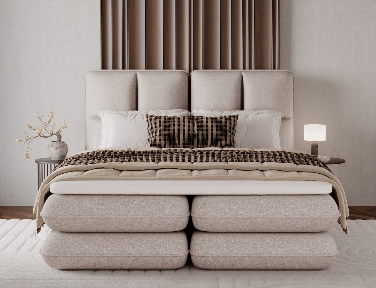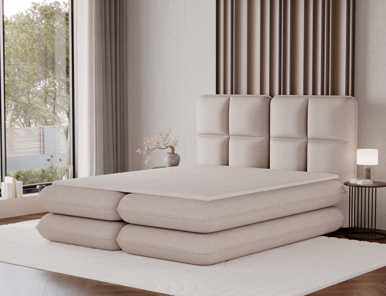 Patul Tonila este un pat tapitat modern si functional care imbina confortul somnului cu solutii practice pentru dormitor, fiind ideal atat pentru amenajari moderne, cat si clasice. Constructia solida, cu o inaltime de 127 cm si o lungime de 235 cm, asigura stabilitate si un sprijin confortabil, iar umplutura utilizata: spuma T2130 (lada de depozitare), arcuri bonell si spuma T2540 cu grosimea de 2.5 cm garanteaza sustinerea corecta a corpului si un nivel ridicat de confort in utilizarea zilnica. Patul este dotat cu un spatiu practic de depozitare pentru lenjerie care faciliteaza organizarea si mentinerea ordinii in dormitor, iar aspectul este completat de picioare de mobilier negre, ce confera structurii un caracter modern si aerisit. Modelul Tonila este disponibil in trei dimensiuni populare: 140x200 cm, 160x200 cm si 180x200 cm, permitand adaptarea usoara la dimensiunea incaperii si la nevoile individuale, oferind un pat confortabil care combina estetica, durabilitatea si functionalitatea.Compozitie materialMaterial tapiterie: 100% poliester (tesatura primara Aura 18).Material cadru: lemn de pinUmplutura sezut: arcuri Bonell si spuma T2540Umplutura cadru: spuma T2130Grosime topper: 5 cmUmplutura spatar: spuma T2130Picioare din plastic de culoare neagra.Informatii si dimensiuni specificeInaltime sezut: 52 cmInaltime picioare: 2.5 cmGreutatea maxima suportata: 240 kgCompartiment depozitare: 2Dimensiuni compartiment depozitare: 196x76x23 cmSuprafata de dormit: 160x200 cmProdusul necesita asamblare.