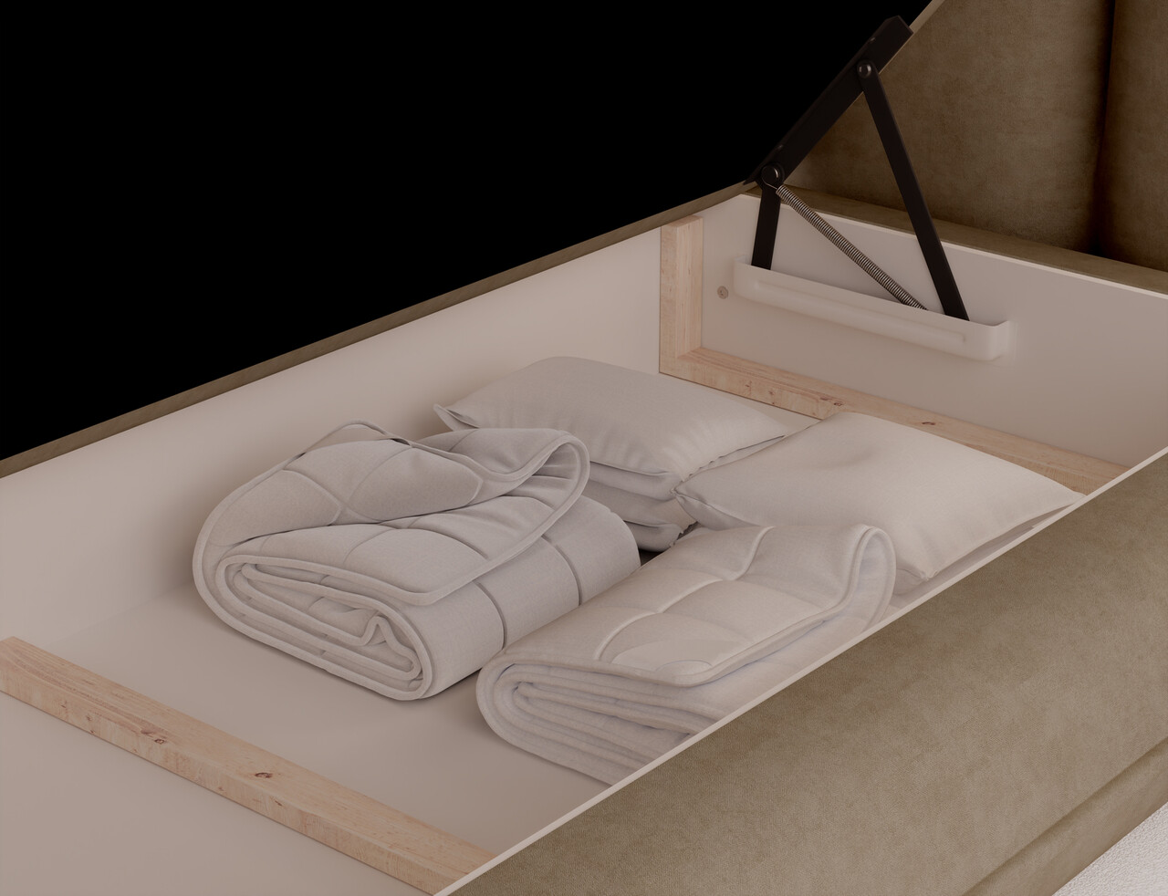 Pat tapitat cu lada depozitare 160x200 cm ELTAP Tonila lemn/poliester maro deschis