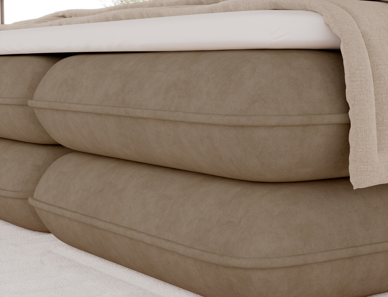 Patul Tonila este un pat tapitat modern si functional care imbina confortul somnului cu solutii practice pentru dormitor, fiind ideal atat pentru amenajari moderne, cat si clasice. Constructia solida, cu o inaltime de 127 cm si o lungime de 235 cm, asigura stabilitate si un sprijin confortabil, iar umplutura utilizata: spuma T2130 (lada de depozitare), arcuri bonell si spuma T2540 cu grosimea de 2.5 cm garanteaza sustinerea corecta a corpului si un nivel ridicat de confort in utilizarea zilnica. Patul este dotat cu un spatiu practic de depozitare pentru lenjerie care faciliteaza organizarea si mentinerea ordinii in dormitor, iar aspectul este completat de picioare de mobilier negre, ce confera structurii un caracter modern si aerisit. Modelul Tonila este disponibil in trei dimensiuni populare: 140x200 cm, 160x200 cm si 180x200 cm, permitand adaptarea usoara la dimensiunea incaperii si la nevoile individuale, oferind un pat confortabil care combina estetica, durabilitatea si functionalitatea.Compozitie materialMaterial tapiterie: 100% poliester (tesatura primara Aura 20).Material cadru: lemn de pinUmplutura sezut: arcuri Bonell si spuma T2540Umplutura cadru: spuma T2130Grosime topper: 5 cmUmplutura spatar: spuma T2130Picioare din plastic de culoare neagra.Informatii si dimensiuni specificeInaltime sezut: 52 cmInaltime picioare: 2.5 cmGreutatea maxima suportata: 240 kgCompartiment depozitare: 2Dimensiuni compartiment depozitare: 196x76x23 cmSuprafata de dormit: 160x200 cmProdusul necesita asamblare.