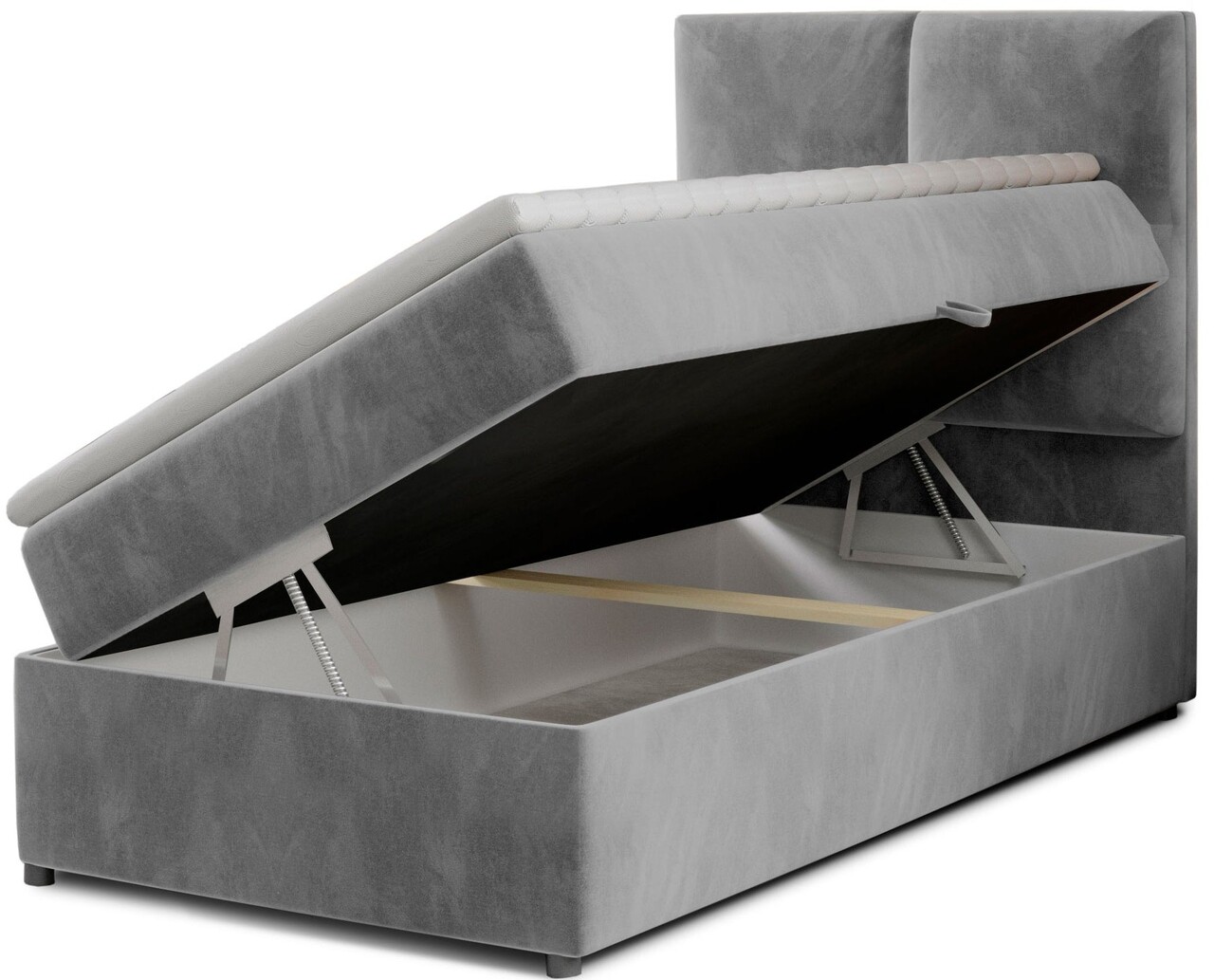 Pat tapitat cu lada depozitare 90x200 cm ELTAP Riv-09 Rivia lemn/poliester gri deschis