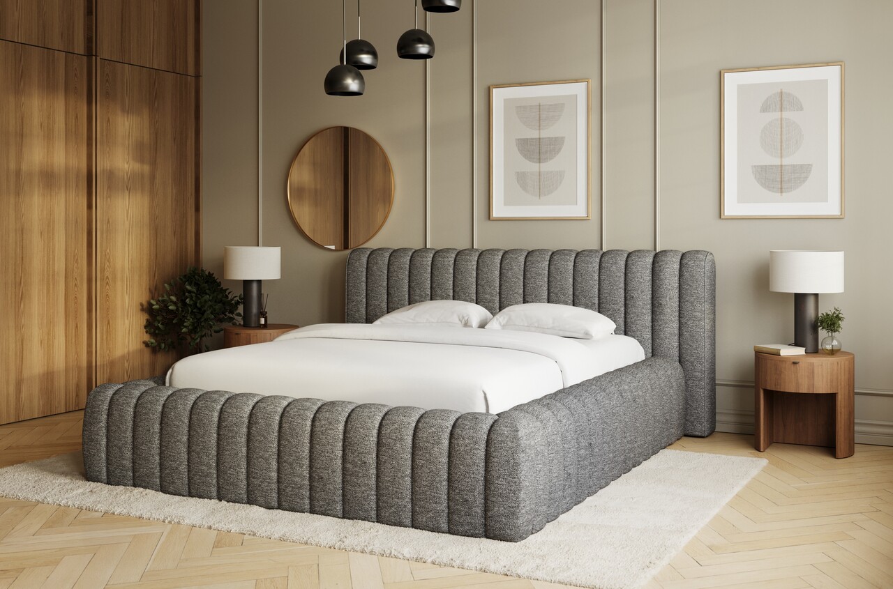 Pat tapitat cu somiera rabatabila si lada depozitare 140x200 cm ELTAP 03COR-1.4 Carilla metal/poliester gri