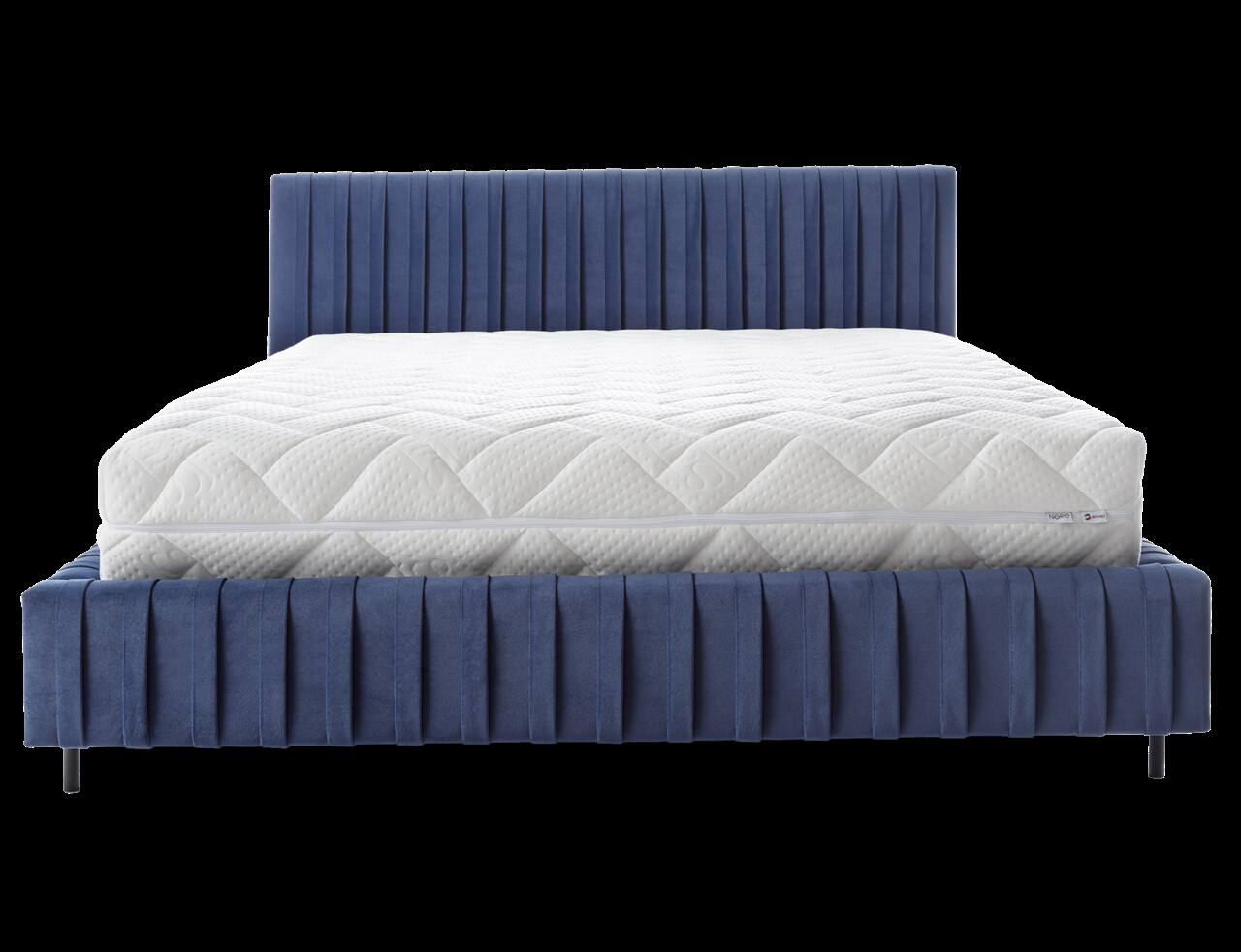 Pat tapitat cu somiera rabatabila si lada depozitare 140x200 cm ELTAP Plissa metal/poliester albastru inchis