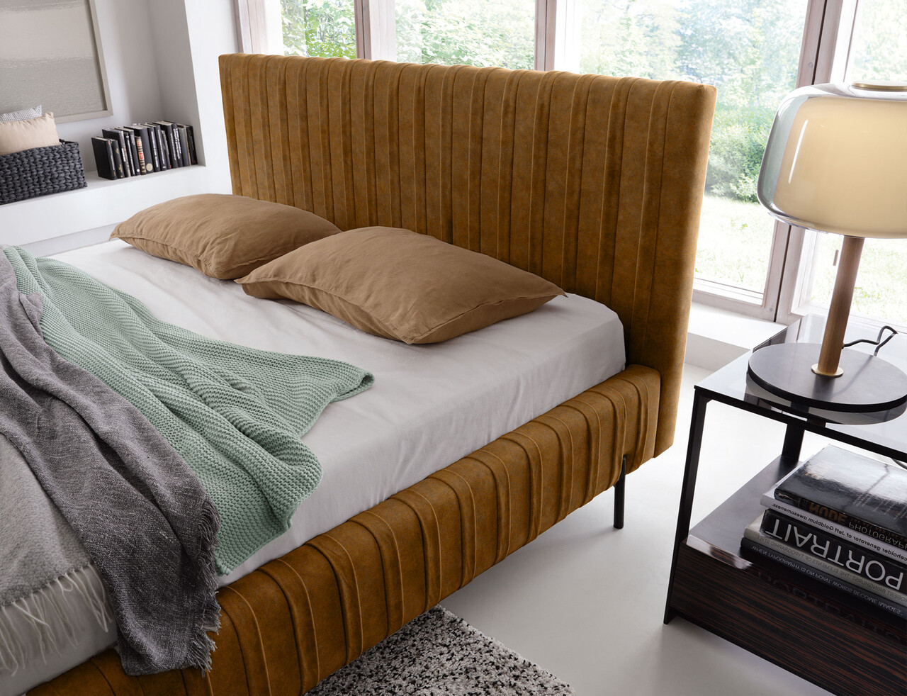 Pat tapitat cu somiera rabatabila si lada depozitare 140x200 cm ELTAP Plissa metal/poliester camel