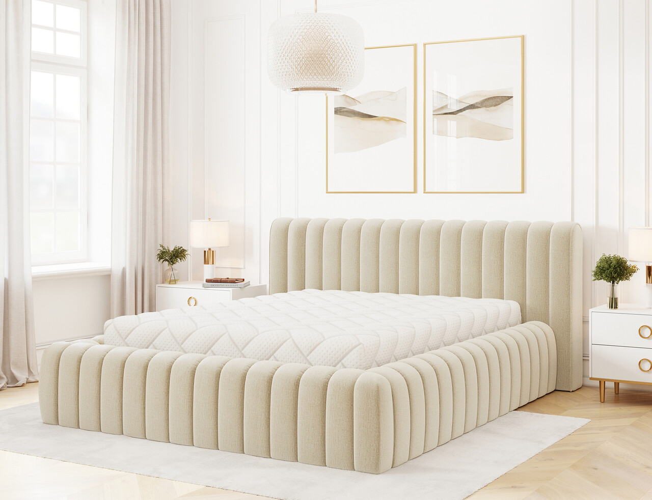 Pat tapitat cu somiera rabatabila si lada depozitare 160x200 cm ELTAP 04MO-1.6 Carilla metal/poliester bej