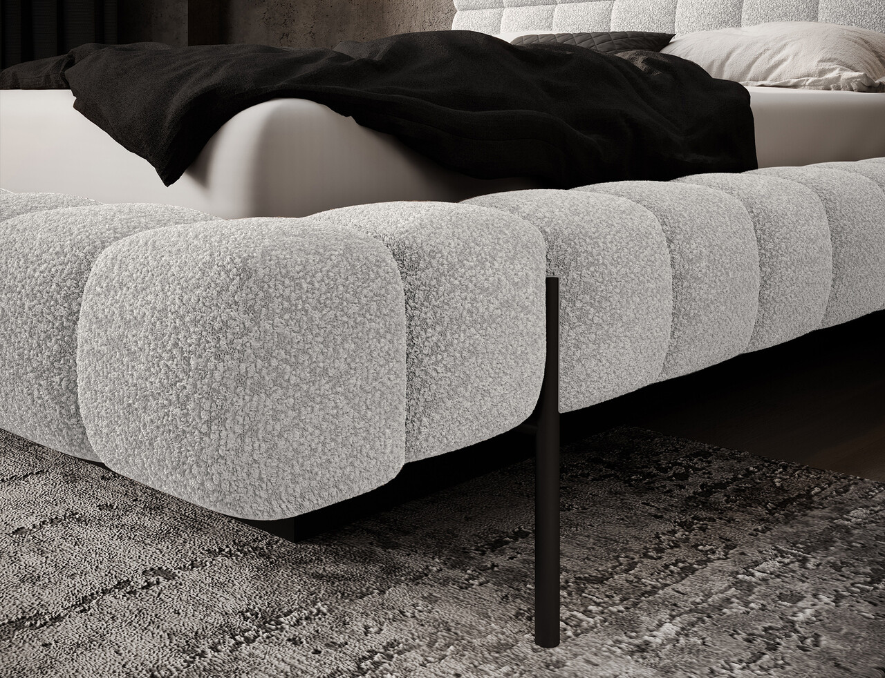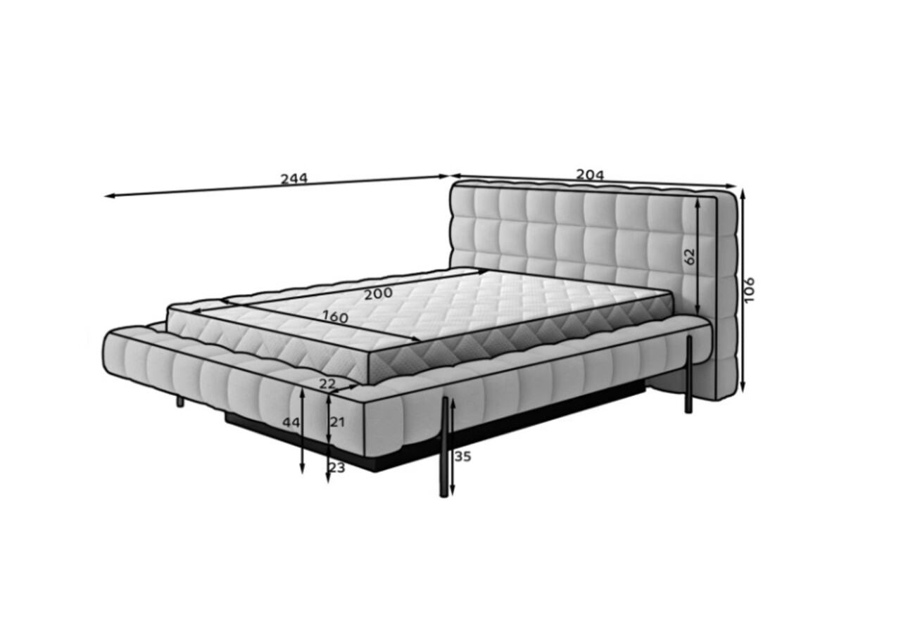 Patul Magentta reprezinta o combinatie de design modern, functionalitate si confort deosebit. Datorita spatarului tapitat, patul are un aspect extrem de elegant si adauga o nota de caldura oricarui dormitor. Structura solida si spatarul umplut cu spuma T2130 ofera un suport excelent si confort atat pentru somn, cat si pentru relaxare. Modelul este disponibil in trei dimensiuni: 140 cm, 160 cm si 180 cm, permitand adaptarea acestuia la dimensiunea camerei si la preferintele individuale. Cadrul metalic include 36 de lamele care sustin uniform salteaua, sporind durabilitatea constructiei si confortul utilizarii. Piciorul negru din metal ofera o baza solida si accentueaza caracterul minimalist si modern al patului. Un avantaj suplimentar este lada de depozitare pentru lenjerie care permite stocarea practica a pilotelor, pernelor sau altor textile, economisind spatiu in camera. Patul Magentta este alegerea ideala pentru cei care apreciaza stilul modern, confortul si solutiile functionale.Compozitie materialMaterial tapiterie: 100% poliester (tesatura primara Royal 01).Material cadru: metalUmplutura cadru: spuma T2130Umplutura spatar: spuma T2130Picioare din metal de culoare neagra.Informatii si dimensiuni specificeInaltime sezut: 44 cmInaltime picioare: 21 cmGreutatea maxima suportata: 250 kgDimensiuni lada depozitare: 177x120x29 cmSomiera rabatabila cu piston pe gazNumar lamele: 36Suprafata de dormit: 160x200 cmProdusul necesita asamblare, asamblat partial.