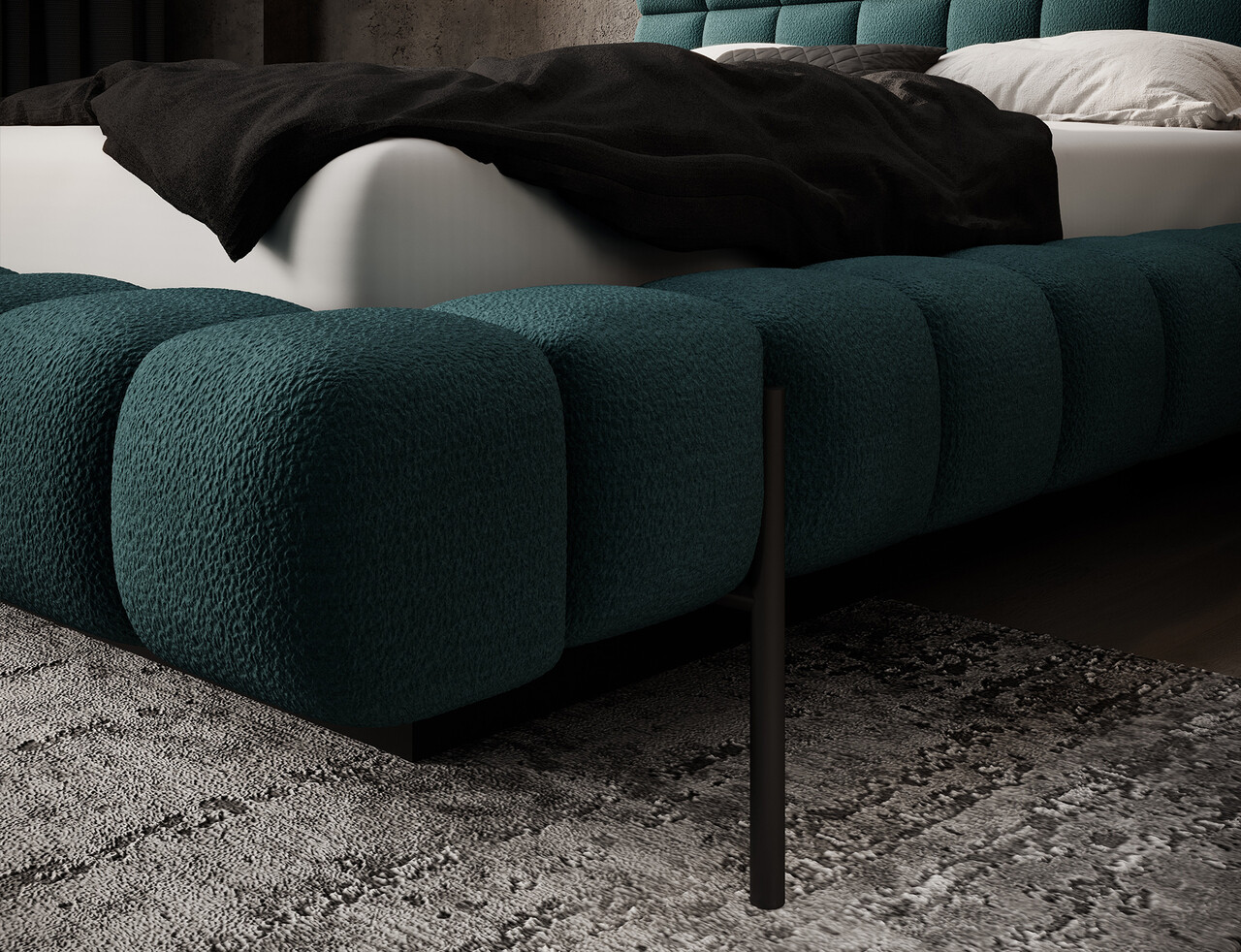 Patul Magentta reprezinta o combinatie de design modern, functionalitate si confort deosebit. Datorita spatarului tapitat, patul are un aspect extrem de elegant si adauga o nota de caldura oricarui dormitor. Structura solida si spatarul umplut cu spuma T2130 ofera un suport excelent si confort atat pentru somn, cat si pentru relaxare. Modelul este disponibil in trei dimensiuni: 140 cm, 160 cm si 180 cm, permitand adaptarea acestuia la dimensiunea camerei si la preferintele individuale. Cadrul metalic include 36 de lamele care sustin uniform salteaua, sporind durabilitatea constructiei si confortul utilizarii. Piciorul negru din metal ofera o baza solida si accentueaza caracterul minimalist si modern al patului. Un avantaj suplimentar este lada de depozitare pentru lenjerie care permite stocarea practica a pilotelor, pernelor sau altor textile, economisind spatiu in camera. Patul Magentta este alegerea ideala pentru cei care apreciaza stilul modern, confortul si solutiile functionale.Compozitie materialMaterial tapiterie: 100% poliester (tesatura primara Amore 38).Material cadru: metalUmplutura cadru: spuma T2130Umplutura spatar: spuma T2130Picioare din metal de culoare neagra.Informatii si dimensiuni specificeInaltime sezut: 44 cmInaltime picioare: 21 cmGreutatea maxima suportata: 250 kgDimensiuni lada depozitare: 177x120x29 cmSomiera rabatabila cu piston pe gazNumar lamele: 36Suprafata de dormit: 160x200 cmProdusul necesita asamblare, asamblat partial.