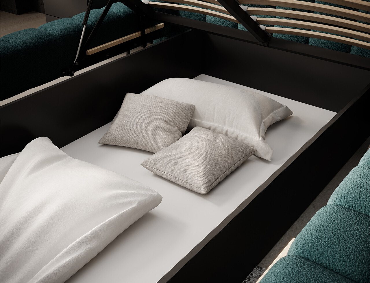 Pat tapitat cu somiera rabatabila si lada depozitare 160x200 cm ELTAP Magentta metal/poliester verde