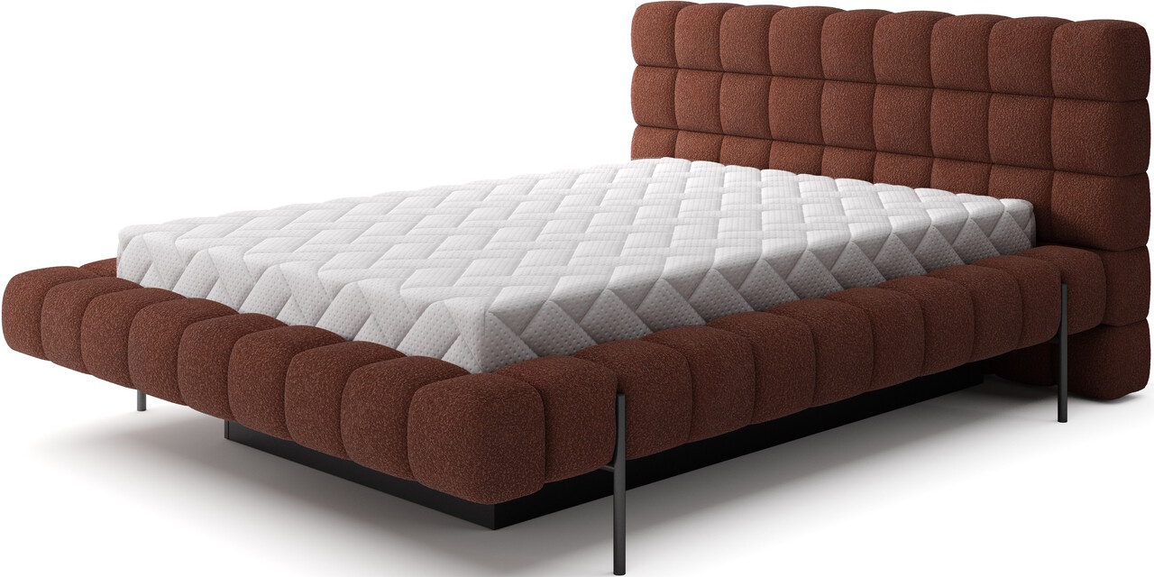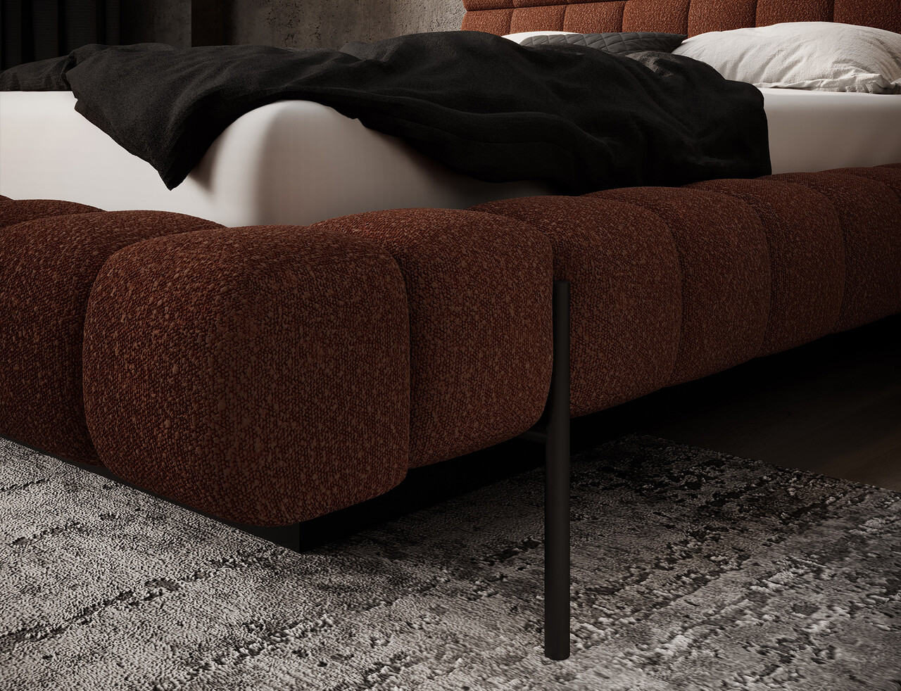 Pat tapitat cu somiera rabatabila si lada depozitare 180x200 cm ELTAP Magentta metal/poliester caramiziu