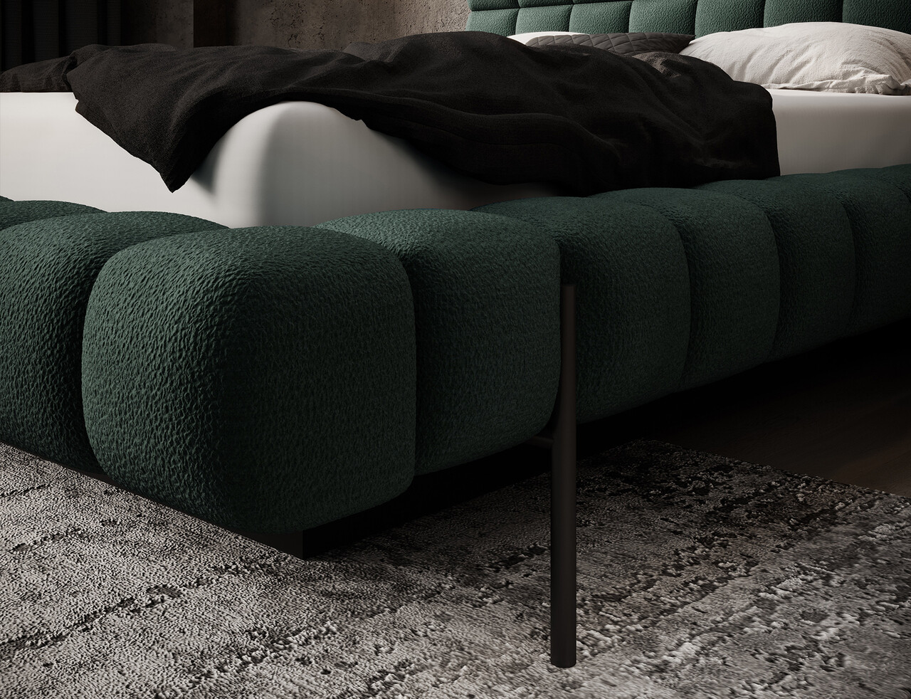 Patul Magentta reprezinta o combinatie de design modern, functionalitate si confort deosebit. Datorita spatarului tapitat, patul are un aspect extrem de elegant si adauga o nota de caldura oricarui dormitor. Structura solida si spatarul umplut cu spuma T2130 ofera un suport excelent si confort atat pentru somn, cat si pentru relaxare. Modelul este disponibil in trei dimensiuni: 140 cm, 160 cm si 180 cm, permitand adaptarea acestuia la dimensiunea camerei si la preferintele individuale. Cadrul metalic include 36 de lamele care sustin uniform salteaua, sporind durabilitatea constructiei si confortul utilizarii. Piciorul negru din metal ofera o baza solida si accentueaza caracterul minimalist si modern al patului. Un avantaj suplimentar este lada de depozitare pentru lenjerie care permite stocarea practica a pilotelor, pernelor sau altor textile, economisind spatiu in camera. Patul Magentta este alegerea ideala pentru cei care apreciaza stilul modern, confortul si solutiile functionale.Compozitie materialMaterial tapiterie: 100% poliester (tesatura primara Amore 35).Material cadru: metalUmplutura cadru: spuma T2130Umplutura spatar: spuma T2130Picioare din metal de culoare neagra.Informatii si dimensiuni specificeInaltime sezut: 44 cmInaltime picioare: 21 cmGreutatea maxima suportata: 260 kgDimensiuni lada depozitare: 177x140x29 cmSomiera rabatabila cu piston pe gazNumar lamele: 36Suprafata de dormit: 180x200 cmProdusul necesita asamblare, asamblat partial.