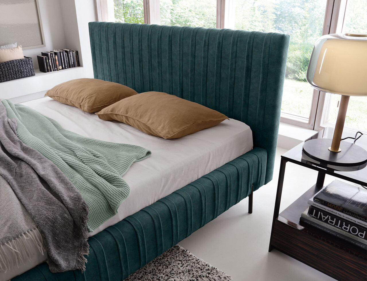 Pat tapitat cu somiera rabatabila si lada depozitare 180x200 cm ELTAP Plissa metal/poliester verde