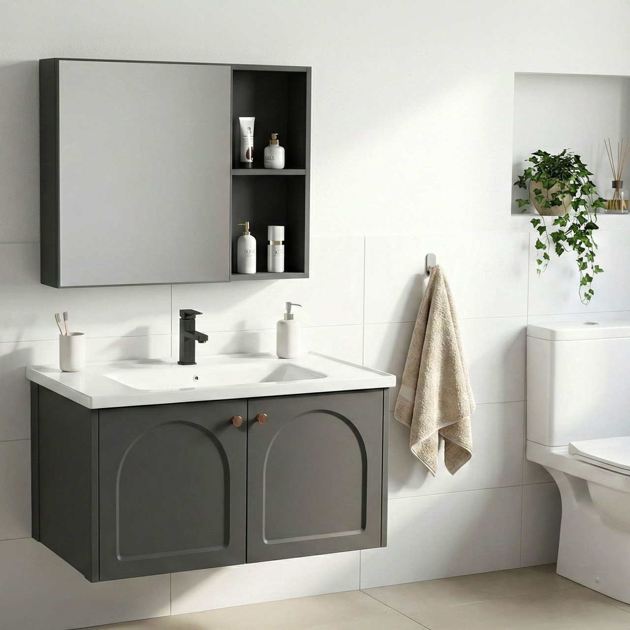 Set mobilier de baie cu lavoar Denver 80cm Grey