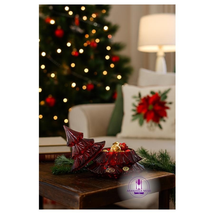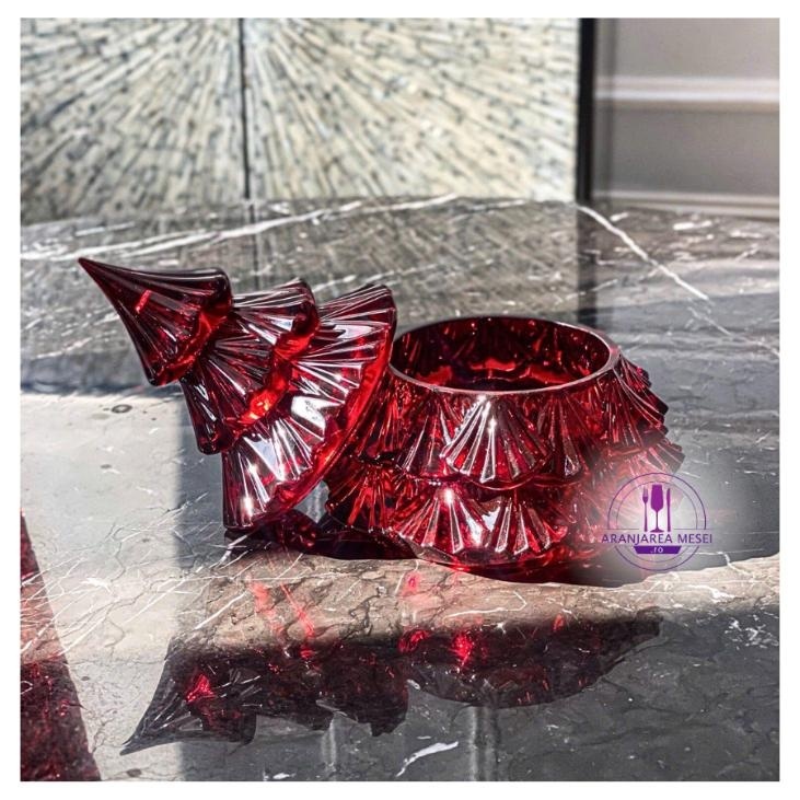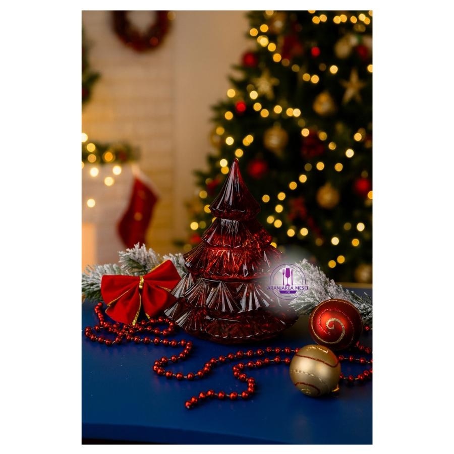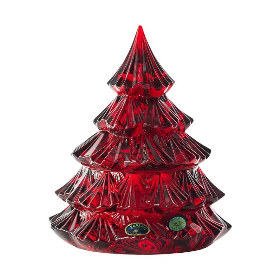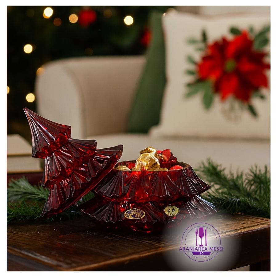 Bomboniera din cristal Bohemia decorată cu motiful unui brad roșu este un exemplu strălucitor al măiestriei cehe. Realizată cu o claritate și o eleganță deosebite, această bombonieră îmbină tradiția și arta meșteșugului din secole trecute, fiind un element decorativ ce atrage privirile. Fiecare detaliu este gândit cu atenție, iar cristalul de Bohemia, recunoscut la nivel mondial, conferă un plus de rafinament oricărei încăperi. Adaugă o notă de sofisticare și un strop de magie oricărei ocazii cu această bombonieră elegantă.