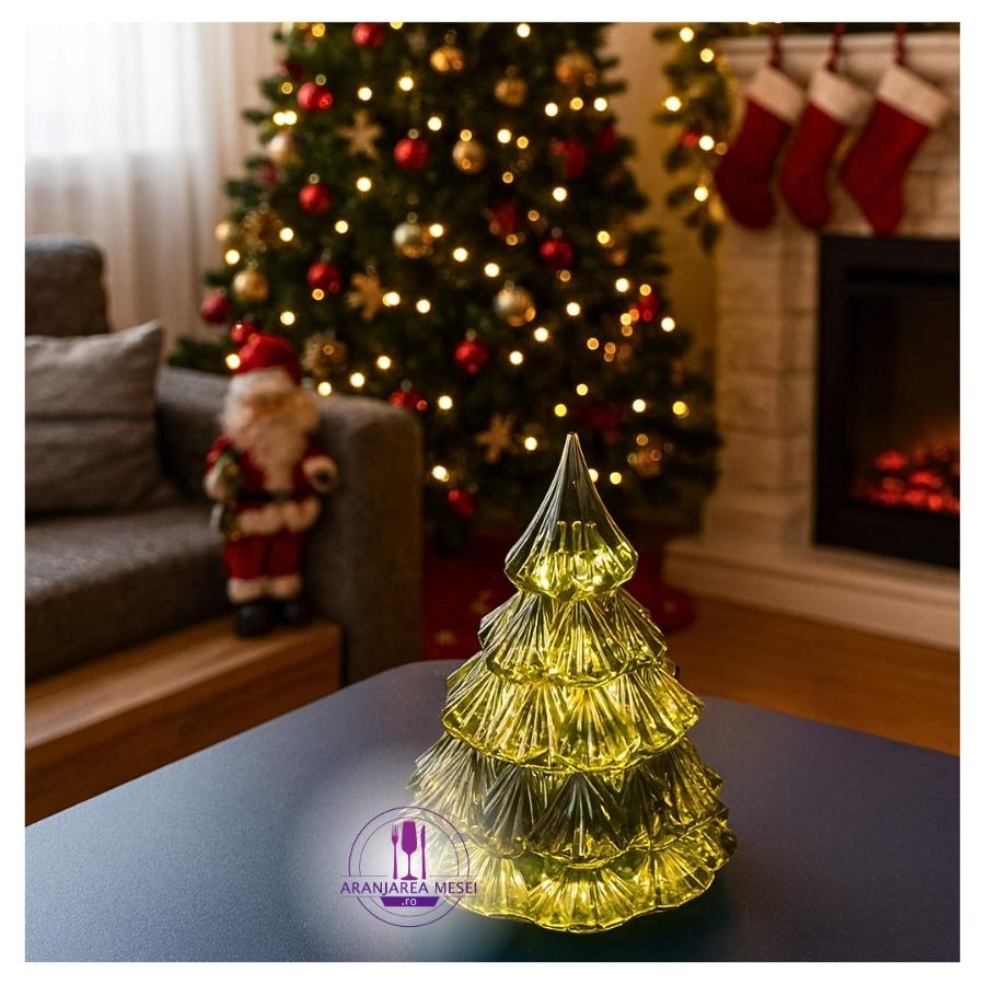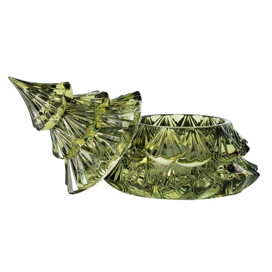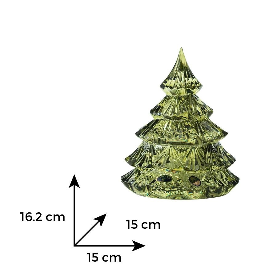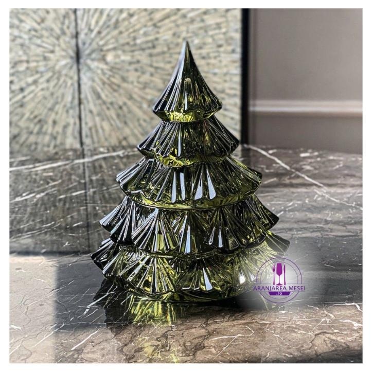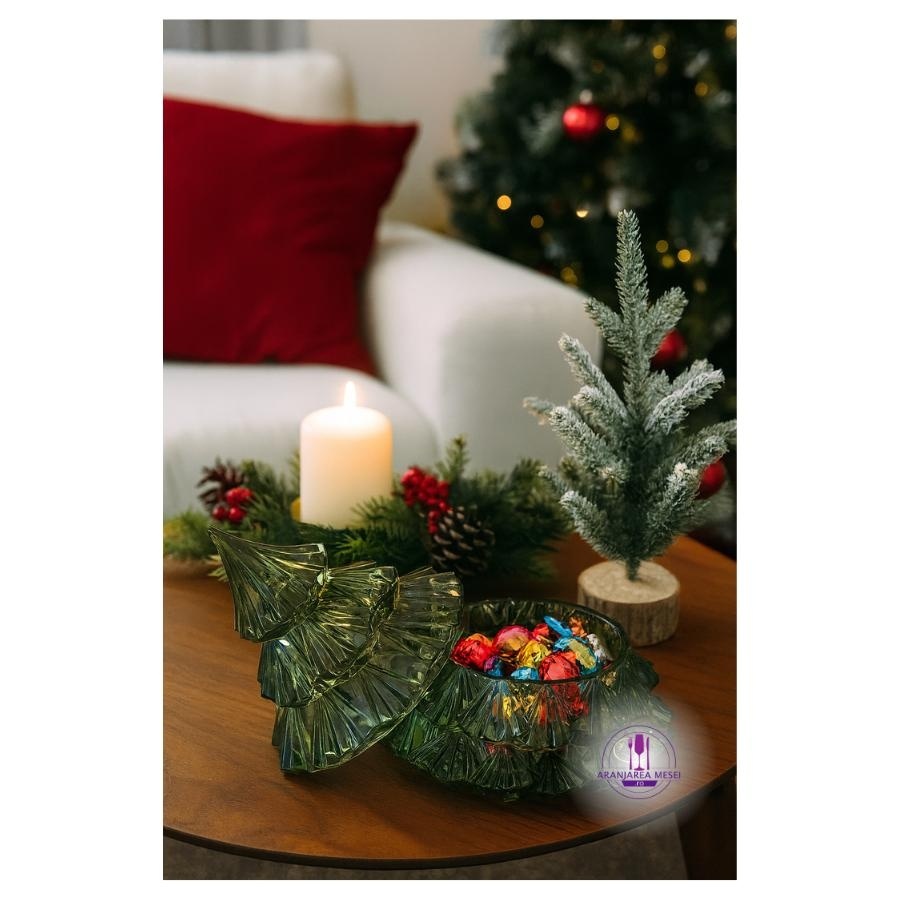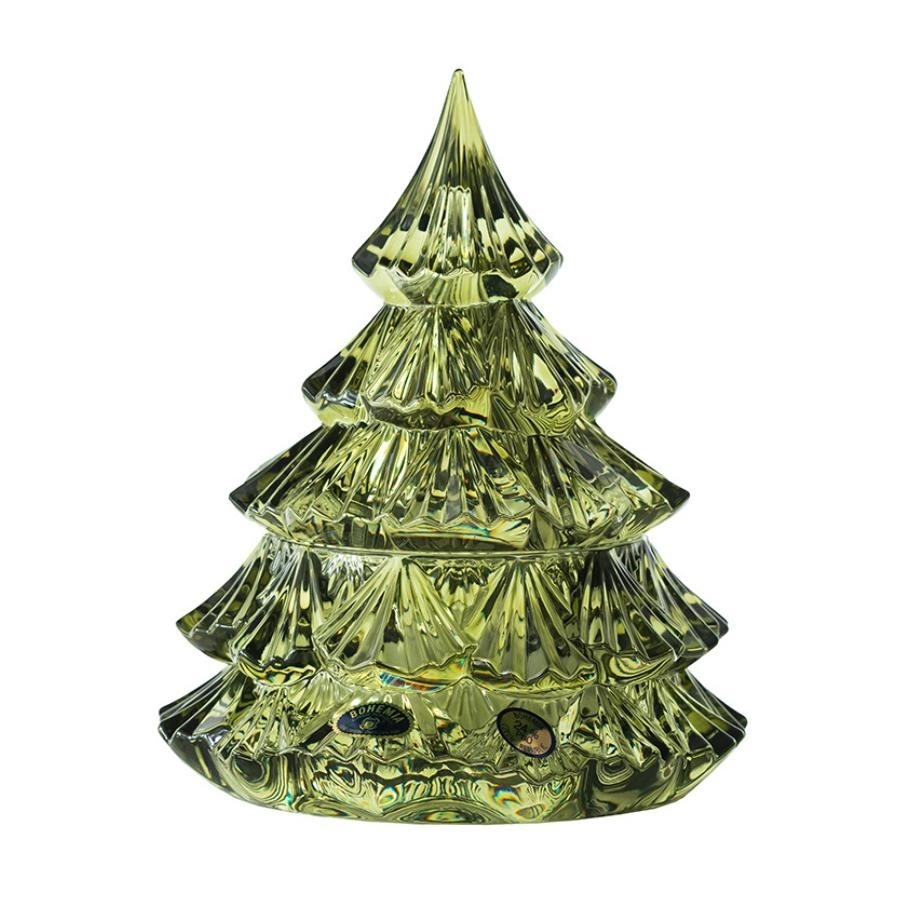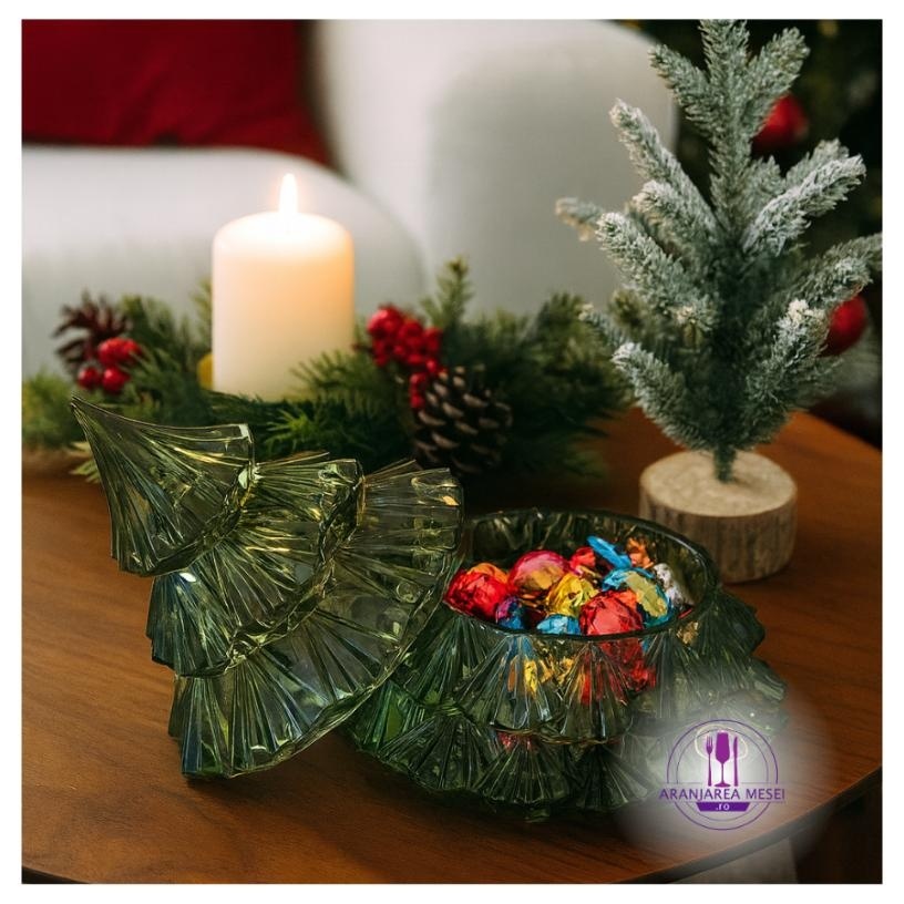 Bomboniera din cristal Bohemia decorată cu motiv de brad verde este o adevărată bijuterie de artă, ce evidențiază măiestria meșteșugarilor cehi. Confecționată din cristal de cea mai bună calitate, această bombonieră impresionează prin claritatea sa strălucitoare și designul elegant, fiind o alegere perfectă pentru a adăuga un strop de rafinament oricărui interior. Detaliile delicate și finisajele impecabile fac din acest produs o piesă unică, ideală pentru a păstra și expune dulciuri sau alte delicatese. Oferă un cadou deosebit celor dragi sau înfrumusețează-ți propria colecție decorativă!