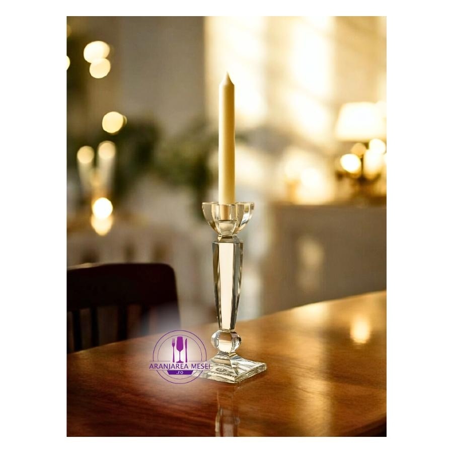 Sfesnicul OLYMPIA din cristal Bohemia, cu o înălțime de 30.5 cm, este o piesă elegantă ce aduce un strop de rafinament în orice încăpere. Realizat din cristal de Bohemia pur, ce conține 24% oxid de plumb, acest sfesnic se remarcă prin claritatea sa strălucitoare și greutatea semnificativă. Fiecare detaliu este lucrat cu măiestrie de meșteșugarii cehi, oferind o eleganță aparte care va încânta privitorii. Amplasați-l în living, dining sau pe masa de sărbătoare pentru a crea o atmosferă caldă și sofisticată.