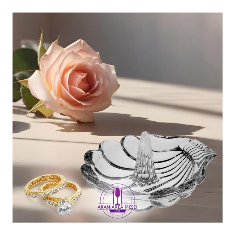 Suportul pentru inele model SCOICA din cristal Bohemia este o piesă deosebită, ce îmbină tradiția și măiestria cehă. Realizat cu o claritate și o frumusețe remarcabilă, acest suport reflectă strălucirea cristalului de Bohemia, apreciat la nivel mondial. Designul său elegant adaugă un strop de rafinament oricărui interior, devenind un accesoriu ideal pentru organizarea inelelor. Fiecare detaliu este lucrat cu atenție, evidențiind expertiza meșteșugarilor care transformă cristalul în opere de artă unice.