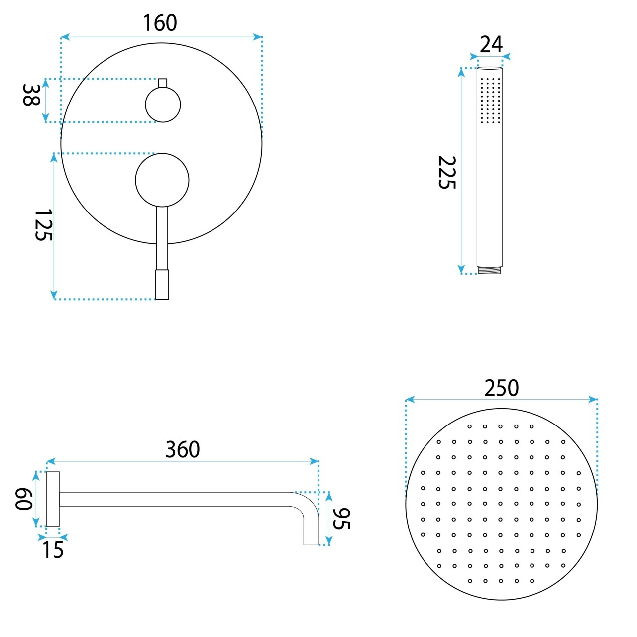 Setul de duș încastrat Lungo Chrome Diamond îmbină designul modern cu confortul utilizării zilnice. Pachetul include o para de duș elegantă, o pară de mână practică și o baterie încastrată cu comutator de funcții, oferind un confort deplin în timpul băii. Întregul set este realizat din materiale de înaltă calitate, iar finisajul cromat conferă elementelor strălucire și durabilitate deosebite. Para de duș asigură un jet de apă uniform și relaxant, în timp ce para de mână subțire garantează confort zilnic. Mânerele cu tăietură de diamant evidențiază caracterul unic al setului, adăugându-i un aspect luxos. O soluție extrem de practică este sistemul de instalare Box, care permite montajul rapid și precis al bateriei încastrate. Masca și nivela integrată protejează componentele interne în timpul instalării și oferă acces ușor pentru întreținere sau service. Culoare: De aur Material: Aluminiu , Alamă Metodă de montaj: Îngropată în perete Tip baterie: Monocomandă Pipa cadă: Nu Reglare a presiunii: Reglare a presiunii Sistem Anti-Calc: Sistem Anti-Calc Garantie: 24 luni