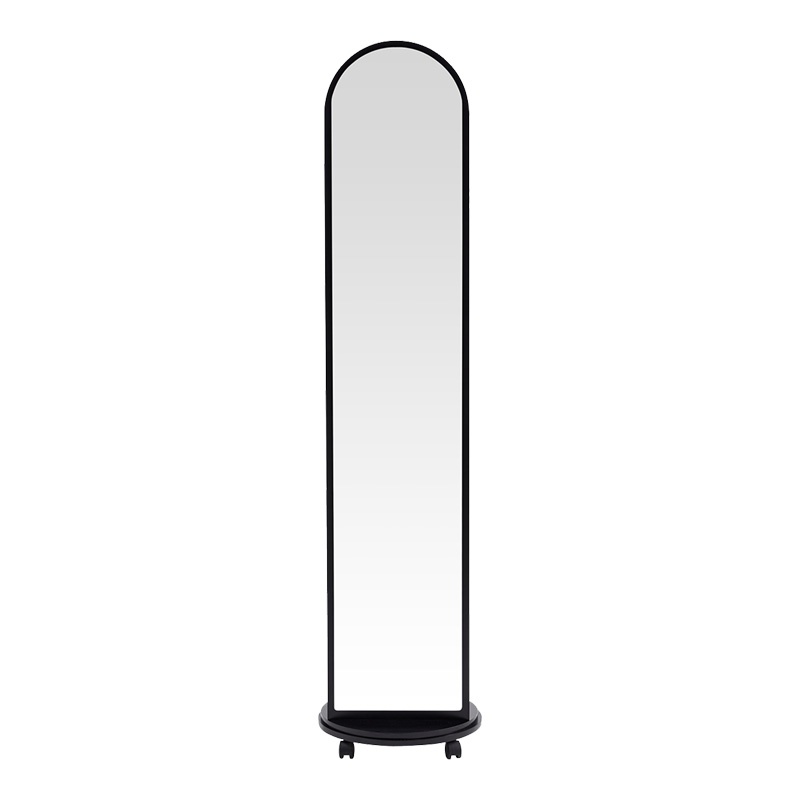 Oglinda cu rafturi Espero Negru 34x34x170 cm aduce un plus de eleganță și funcționalitate în orice încăpere. Designul său înalt, cu o formă ovală, oferă o vizualizare completă, iar cadrul din MDF finisat în negru asigură durabilitate. Baza rotativă permite accesul la rafturi ascunse, ideale pentru organizarea pantofilor, genților sau accesoriilor. Rolele montate la bază facilitează mutarea ușoară a oglinzii între camere. Produsul se livrează dezasamblat, cu un ghid detaliat pentru asamblare, asigurând astfel un montaj simplu. Transformă-ți spațiul cu această oglindă practică și stilată!