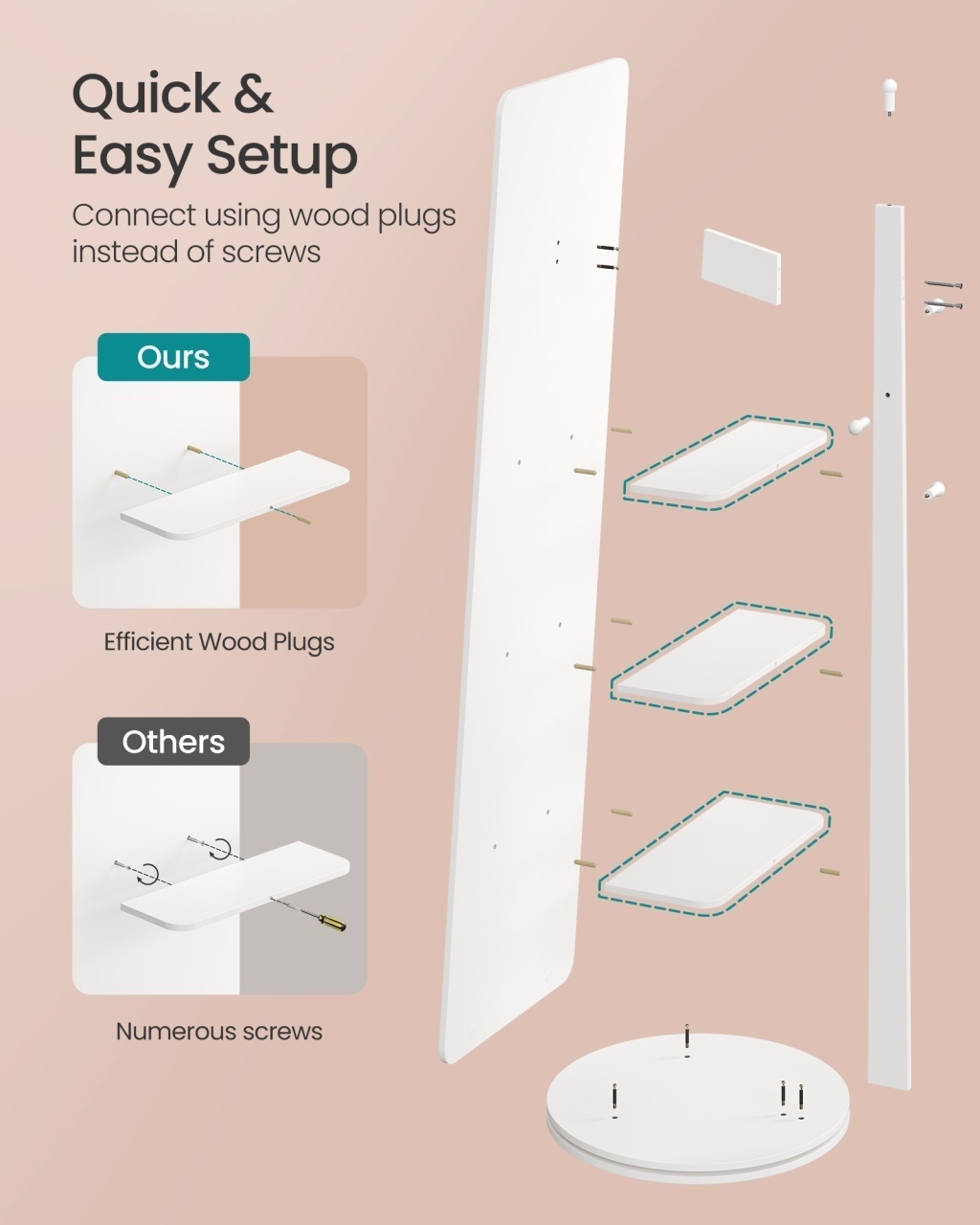 Oglinda de podea rotativă Songmics 45x45x163 cm aduce un plus de eleganță și funcționalitate în orice încăpere. Cu un design minimalist de culoare albă, rama din MDF și baza din oțel oferă durabilitate, iar sticla securizată asigură siguranța utilizării. Această oglindă full-length dispune de patru rafturi și cârlige pentru organizarea accesoriilor, iar designul rotativ la 360° facilitează accesul. Montajul este simplificat, iar întreținerea se face ușor. Oglinda este ideală pentru dormitor, living sau dressing, îmbinând estetica cu utilitatea.
