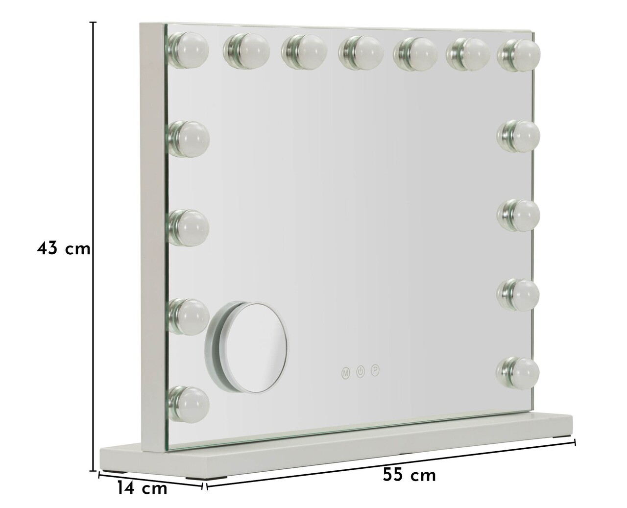Oglinda de masa cu LED-uri Mauro Ferretti Hollywood 55x14x43 cm fier alb