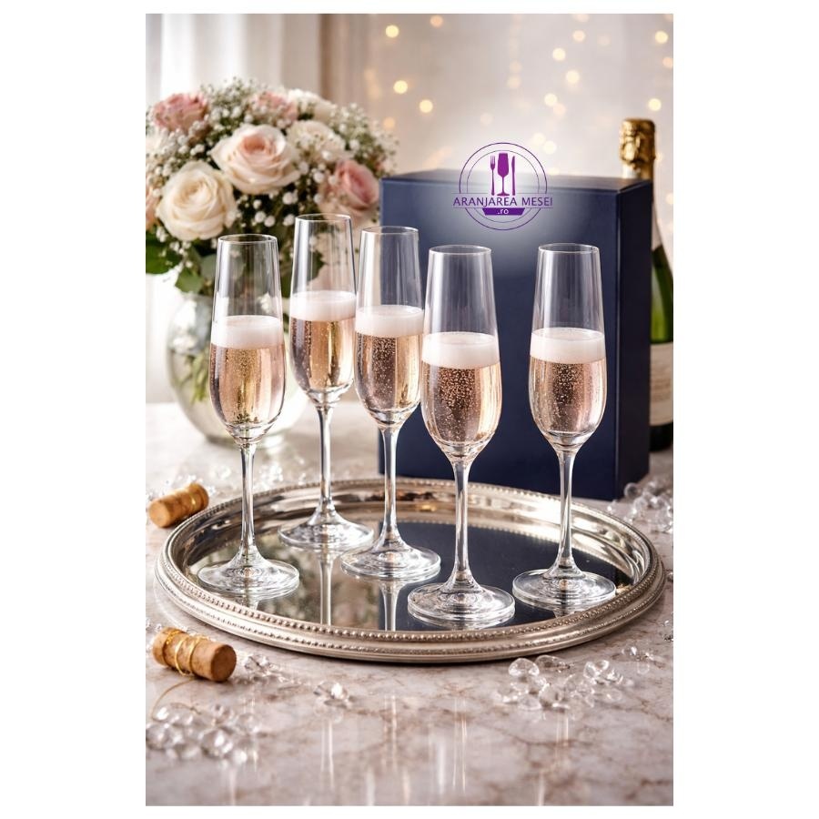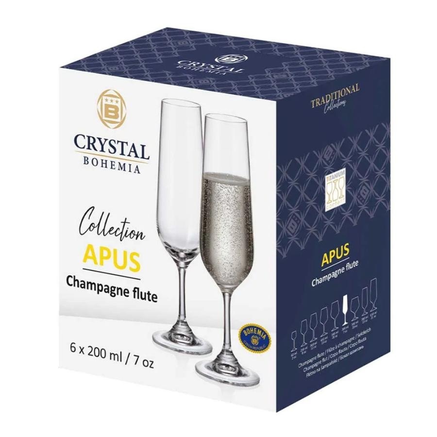 APUS Set 6 pahare sticla cristalina Bohemia sampanie flute 200 ml