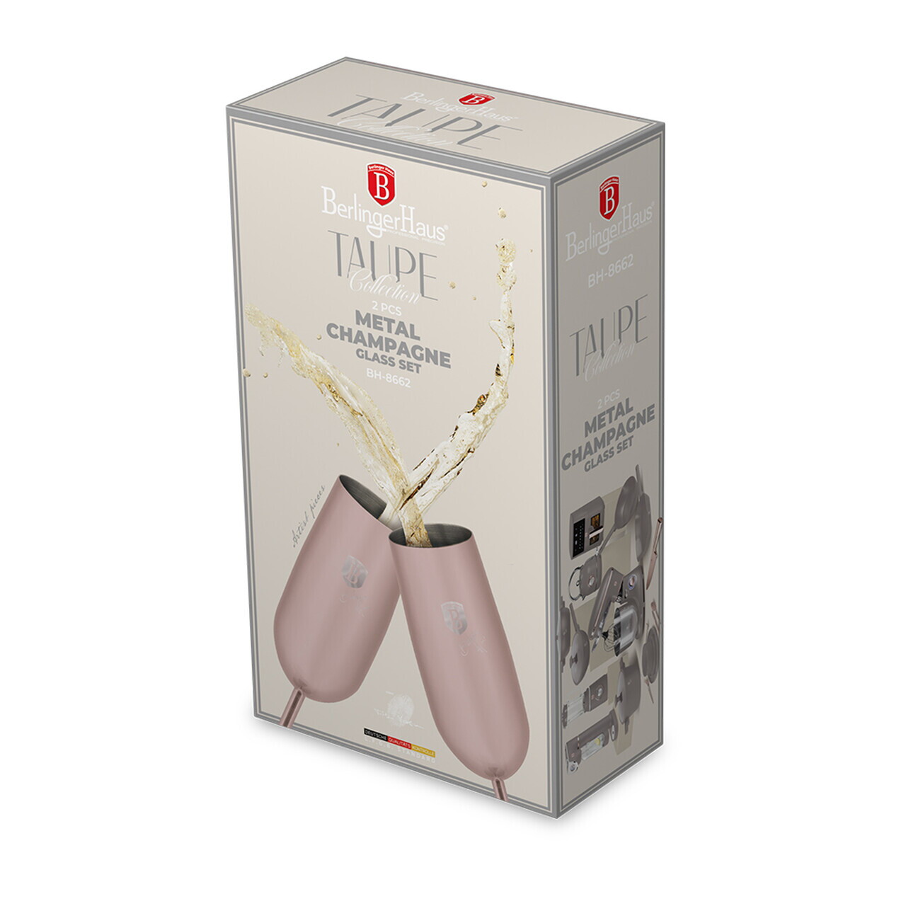 Set 2 pahare pentru sampanie Berlinger Haus Taupe/Rose 260 ml inox 18/10 roz