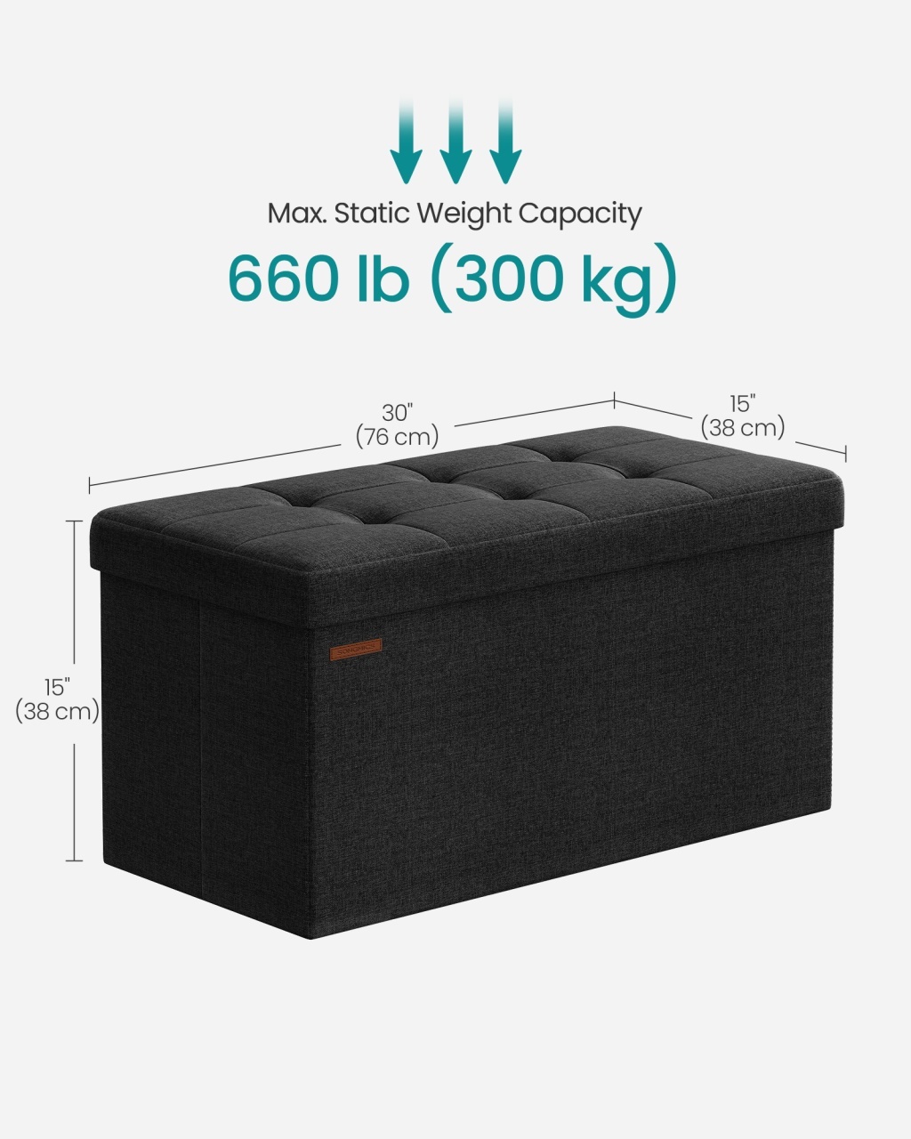 Cufar depozitare Otoman Negru Songmics 76x38x38 cm