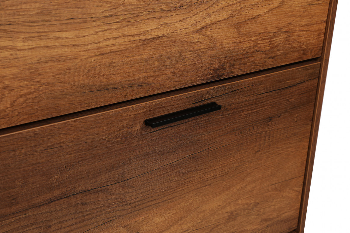Dulapul pentru pantofi SHC-431-OO-1 Oslo Walnut este confecționat din PAL melaminat, având o grosime de 16 mm și dimensiuni ergonomice de 75 cm lățime, 128 cm înălțime și 29 cm adâncime. Acesta dispune de un sertar superior cu dimensiuni de 75 cm lățime, 10 cm înălțime și 29 cm adâncime, precum și un sertar inferior mai încăpător, de 75 cm lățime, 35 cm înălțime și 29 cm adâncime. Pe lângă sertare, dulapul oferă numeroase rafturi pentru o organizare eficientă. De asemenea, poate fi fixat pe perete pentru un plus de stabilitate. Ambalat într-un singur pachet, acest model este o alegere practică și elegantă pentru orice spațiu.