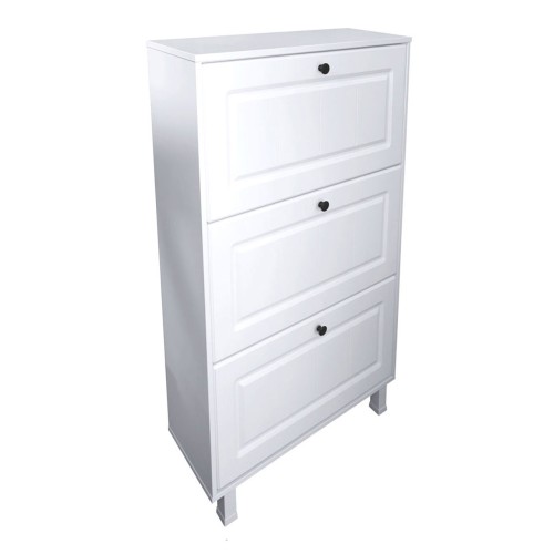Pantofar Zapato cu 3 uși, fabricat din PAL melaminat alb, combină eleganța și funcționalitatea. Dimensiunile sale compacte de 60 x 122 x 26 cm îl fac ideal pentru orice spațiu. Ușile rabatabile din MDF infoliat alb mat, cu frezare, oferă două compartimente de depozitare, facilitând organizarea încălțămintei. Suporturile metalice asigură rezistență, iar picioarele reglabile de 10 cm adaugă stabilitate. Manerul metalic rotund, în culoare negru mat, completează designul modern al pantofarului, aducând un plus de stil în orice încăpere.