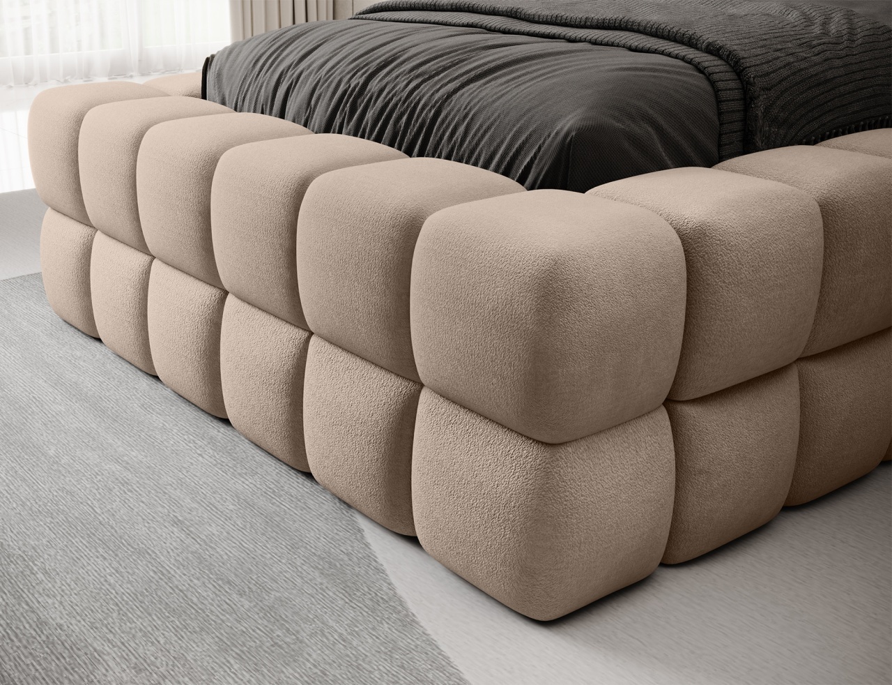 Patul Dizzle 90x200 cm Amore 18 este o piesă de mobilier modernă, care îmbină confortul somnului cu soluții practice. Echipat cu umplutură din spumă T2130, oferă suport optim și confort, iar picioarele solide din plastic rezistent asigură stabilitate. Lada de depozitare pentru lenjerie, spațioasă și ușor accesibilă, ajută la menținerea ordinii în dormitor. Stilul său elegant se potrivește atât în interioare minimaliste, cât și în cele decorative, devenind un punct central al camerei. Produsul este personalizabil, iar instrucțiunile de montaj sunt incluse în colet.
