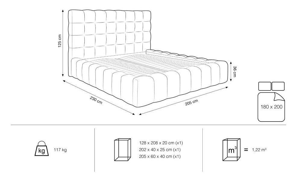 Patul tapitat catifea Bali este un produs elegant, cu un design rafinat ce imbina formele geometrice si tesatura clasica. Tablia ofera un suport ideal pentru spate, iar dimensiunile perfecte il fac ideal pentru orice spatiu. Cu o structura din lemn masiv, acest pat este durabil si robust. Salteaua nu este inclusa, iar asamblarea este rapida si usoara. Poti alege culoarea si materialul in functie de preferintele tale.