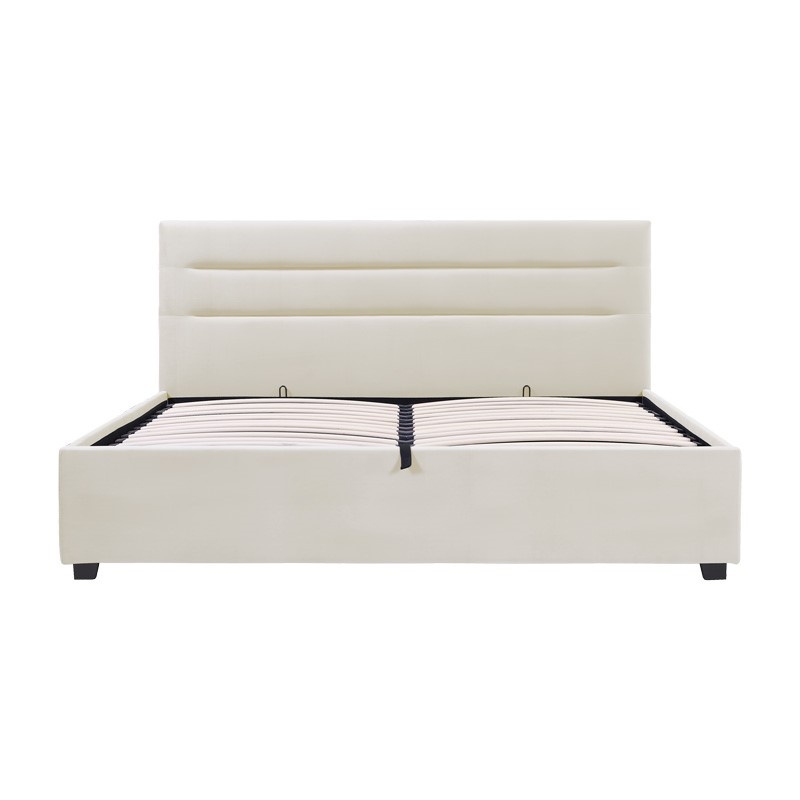 Patul cu depozitare Molito Ecru 158x214x91 cm aduce un strop de lux și confort în dormitorul tău. Cu un design modern, acesta este realizat dintr-un cadru din lemn întărit și îmbrăcat în catifea de înaltă calitate, asigurând durabilitate. Dispune de un mecanism de ridicare pentru acces ușor la un spațiu generos de depozitare sub pat. Tăblia elegantă, dotată cu cusături întărite, completează aspectul minimalist. Livrat dezasamblat, patul include instrucțiuni clare și este ușor de întreținut. Transformă-ți dormitorul cu patul Molito și bucură-te de un somn odihnitor!