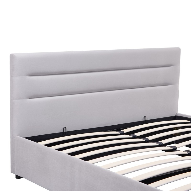 Patul cu depozitare Molito, în nuanțe elegante de gri, îmbină luxul și confortul, fiind perfect pentru orice dormitor. Construit din lemn întărit și tapițat cu catifea de înaltă calitate, acesta dispune de un cap de pat cu cusături întărite, ce oferă un aspect minimalist și rafinat. Mecanismul de ridicare permite accesul la un spațiu de depozitare generos, ideal pentru lenjerii sau alte obiecte. Dimensiunile sale sunt de 158 x 214 x 91 cm, iar montajul se face ușor, cu instrucțiuni incluse. Patul suportă o greutate maximă de 200 kg și este compatibil cu o saltea de 150x200 cm.