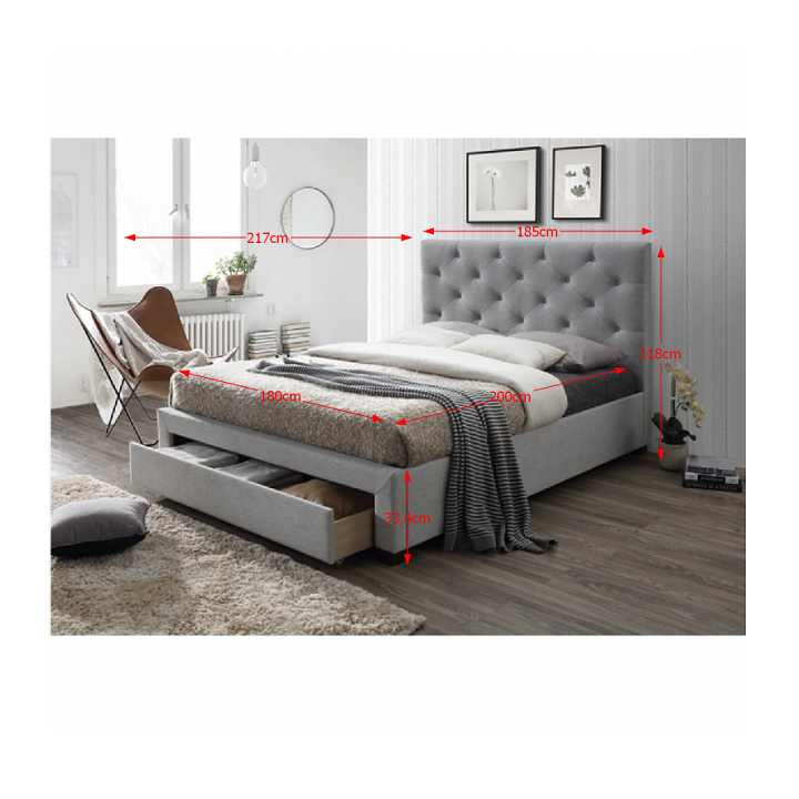 Patul modern SANTOLA, cu o elegantă tesătură gri, aduce un plus de stil și funcționalitate în dormitorul tău. Fabricat din lemn masiv de wenge, acest pat îmbină durabilitatea cu un design contemporan. Dimensiunile sale generoase de 185 cm lățime, 217 cm adâncime și 118 cm înălțime sunt ideale pentru o saltea de 180 x 200 cm, oferind confort maxim. În plus, beneficiază de un spațiu de depozitare ingenios, perfect pentru păstrarea ordinii. Livrat dezasamblat, este ușor de montat, transformând rapid orice cameră într-un refugiu plin de rafinament.