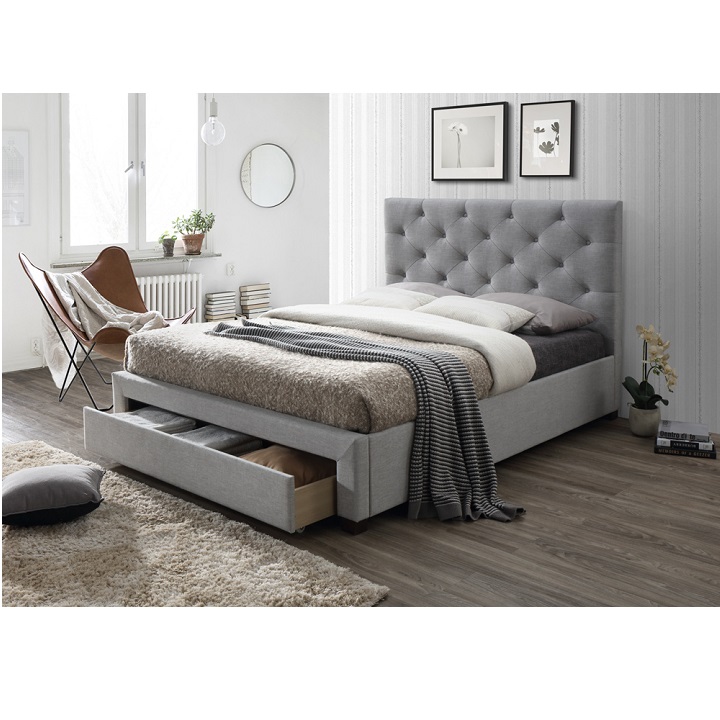 Pat modern cu spatiu depozitare Tesatura gri SANTOLA 180x200