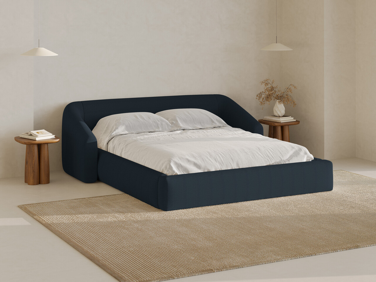 Pat tapitat cu somiera rabatabila si lada depozitare 140x200 cm Windsor & Co Halo tesatura structurata albastru regal