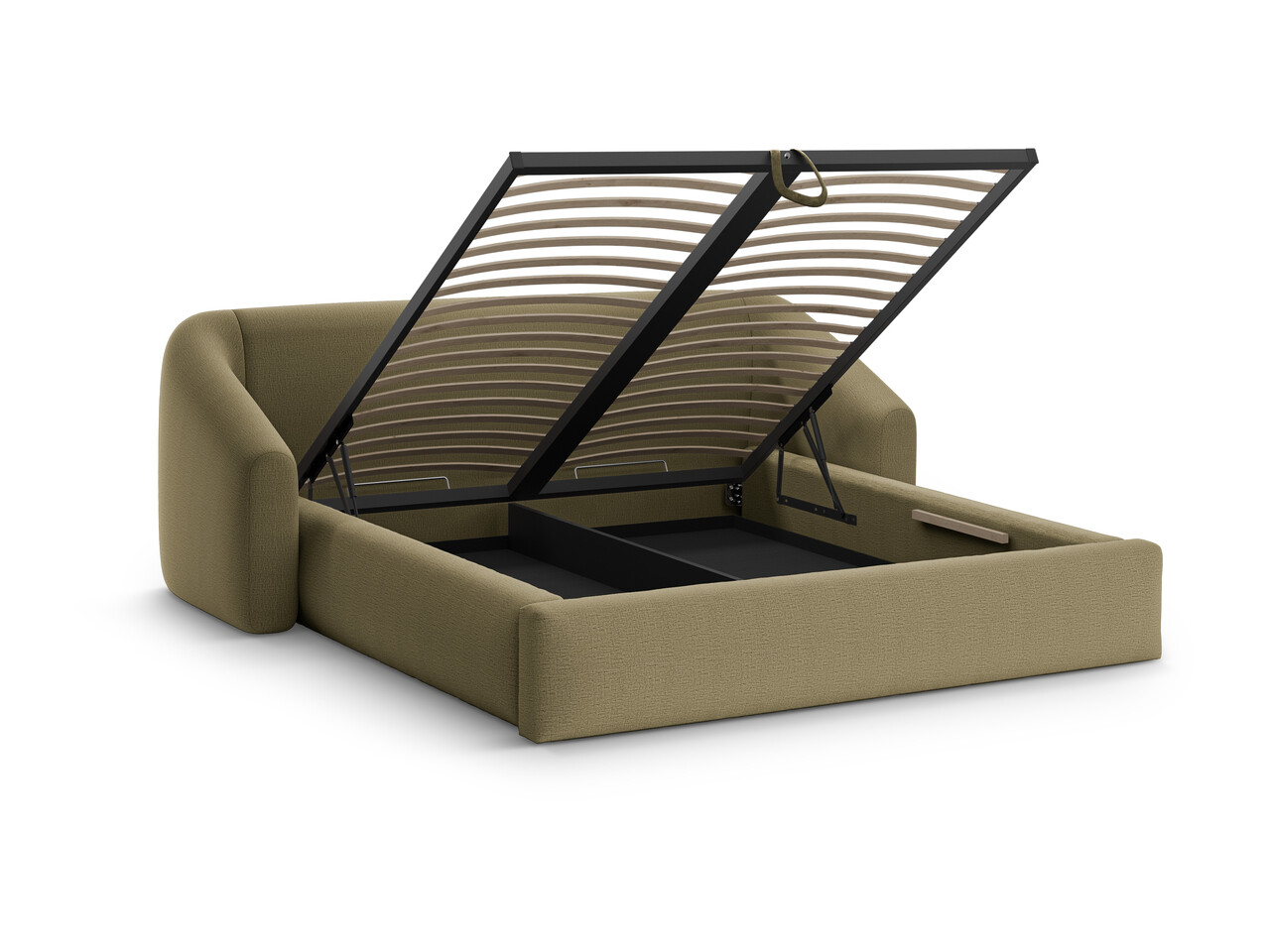 Pat tapitat cu somiera rabatabila si lada depozitare 140x200 cm Windsor & Co Halo tesatura structurata verde