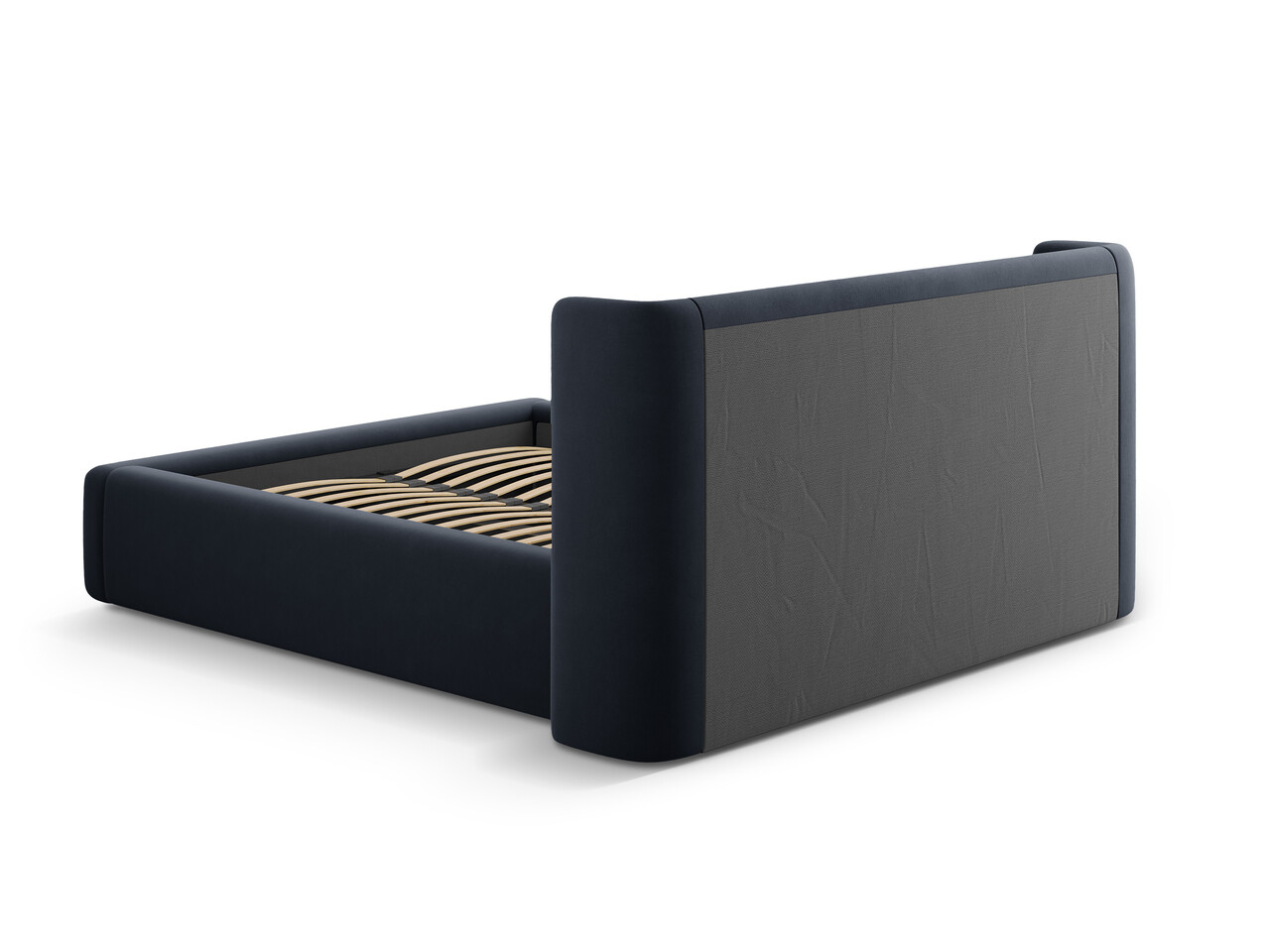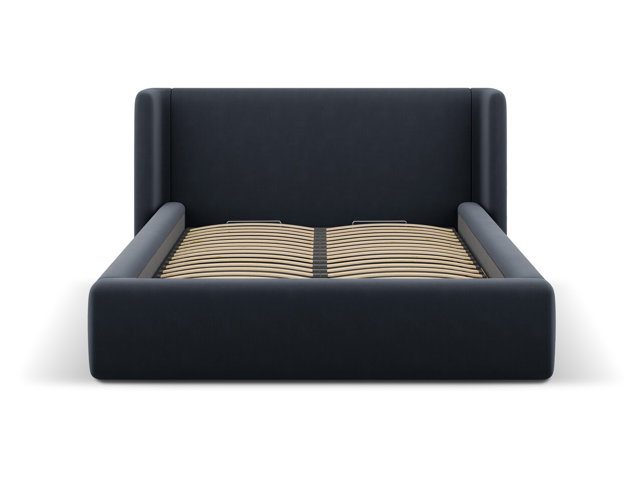 Pat tapitat cu somiera rabatabila si lada depozitare 160x200 cm Windsor & Co Jason catifea albastru inchis