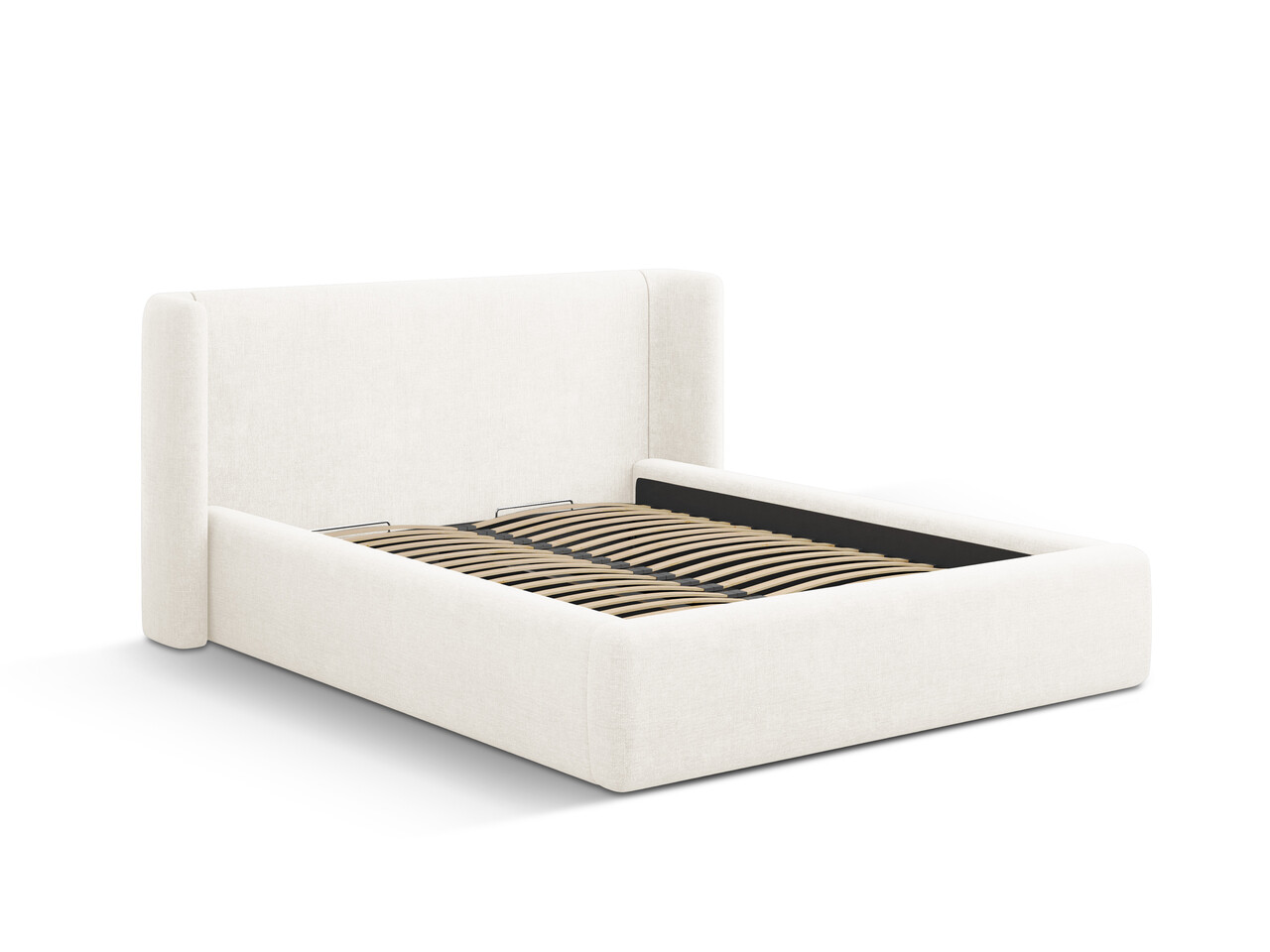 Pat tapitat cu somiera rabatabila si lada depozitare 160x200 cm Windsor & Co Jason tesatura structurata ivoriu