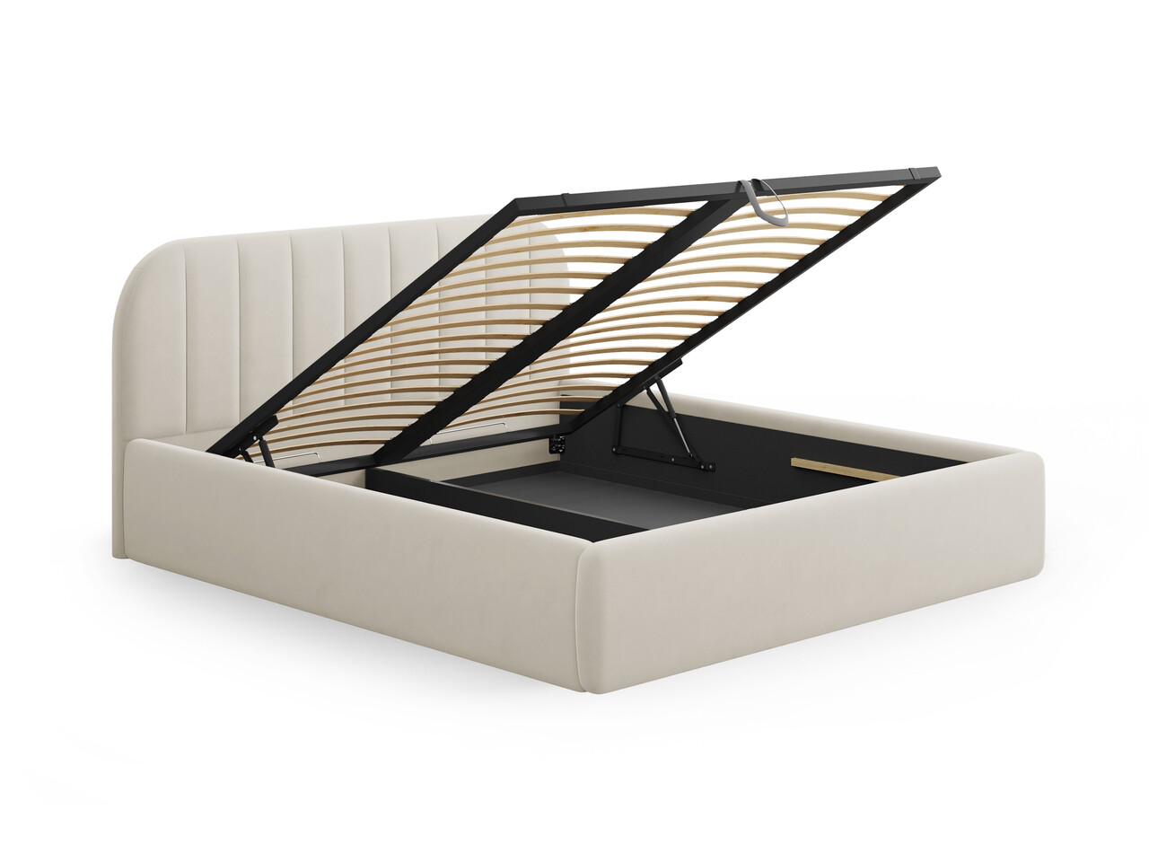 Pat tapitat cu somiera rabatabila si lada depozitare 160x200 cm Windsor & Co Juno catifea bej inchis