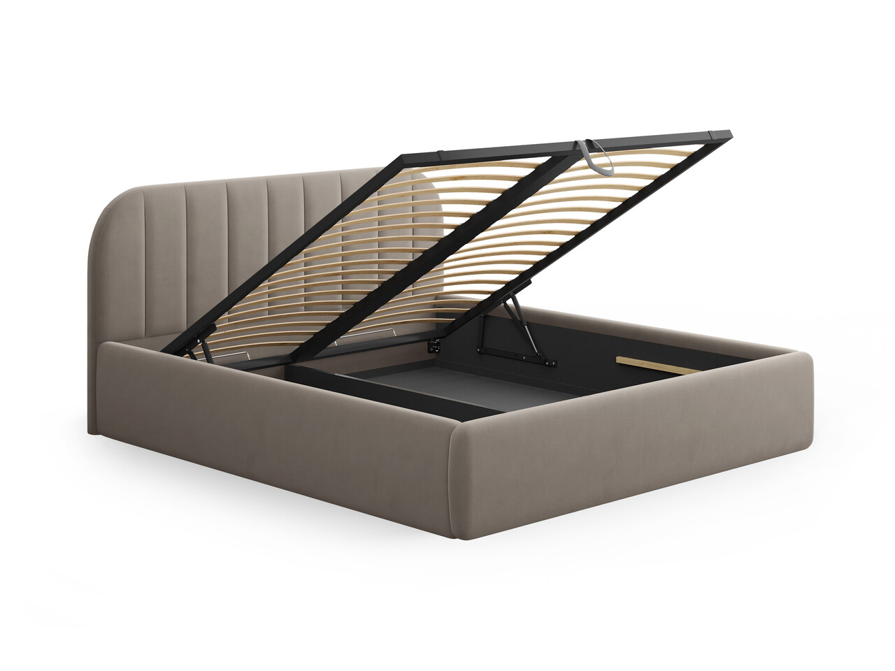 Pat tapitat cu somiera rabatabila si lada depozitare 160x200 cm Windsor & Co Juno catifea cappuccino